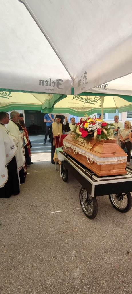 “Ожалошћена породицо, часно свештенство, браћо и сетре. Сабрали смо се данас око одра наше Миланке, мајке, баке, прабаке, комшинице, да са овим чином опела и овом нашом молитвом, да се помолимо Богу за спасење њене душе, а и да својим присуством, колико-толико, ублажимо бол ове честите породице коју је Миланка изродила. Ми смо се данас сабрали тужни што од нас одлази Миланка и што се са њом растајемо, а наша вера нас учи да је овај растанак само привремен, јер ћемо се поново срести, како са њом тако и са свима онима који су променили овај свет и отишли у онај вечни свет, свет где нема више растанка, ни бола, ни туге , ни уздисања, него је само радост у Господу. Знамо да смо овде само привремено како би упознали Бога и како бисмо разумели и сазнали шта је то љубав. А љубав Божија према нама јесте највећа и знамо да нисмо без наде, браћо и сетре, како вели апостол Павле, и знамо да смрт није последње у нашем животу. Ожалошћена породицо, сигурно је да је ваш бол велики, и ви га доживљавате на само себи, рекао бих, својствен начин, и он је сигурно само ваш бол, али верујте да ми овде окупљени око вас и око одра ваше мајке, баке, дубоко се саосећамо са вама. Ми смо ту да вас молитвено подржимо и да молитвено подржимо пут наше Миланке у Царство Божије. Миланка се винула у наручје Божије онда када је Бог то хтео. Јер Он зна када и кога и у које време себи призива, као што све зна када нас шаље у овај свет, зашто неке шаље сада, неке раније, неке касније, све то бива по промислу Божијем. Сви ви добро знате њен животни и мукотрпни пут у коме је остала верна Богу и својој породици. Њена љубав је велика и била је једини старатељ своје деце. Њена љубав вас је пратила на сваком вашем кораку и она ће вас пратити и са онога света. Она ће се и даље бринути о вама и молити се за вас. Иза Миланке остају добра дела, чиста дела, а то је обавеза и за вас, али и за све нас, браћо и сестре, да се потрудимо да иза себе оставимо чиста дела, добра дела, племенита дела, да чинимо онако како каже свети апостол Павле “добро чините да вам се не досади“, јер дела иду испред нас, како у овом животу, тако и када пођемо у онај други живот. Нека је вечни спомен нашој Миланки, нека јој Бог душу прости, нека јој Господ опрости сваки грех који је учинила. Нека јој је вечан спомен мећу нама, а вама, породицо драга, нека Господ подари утеху.“
