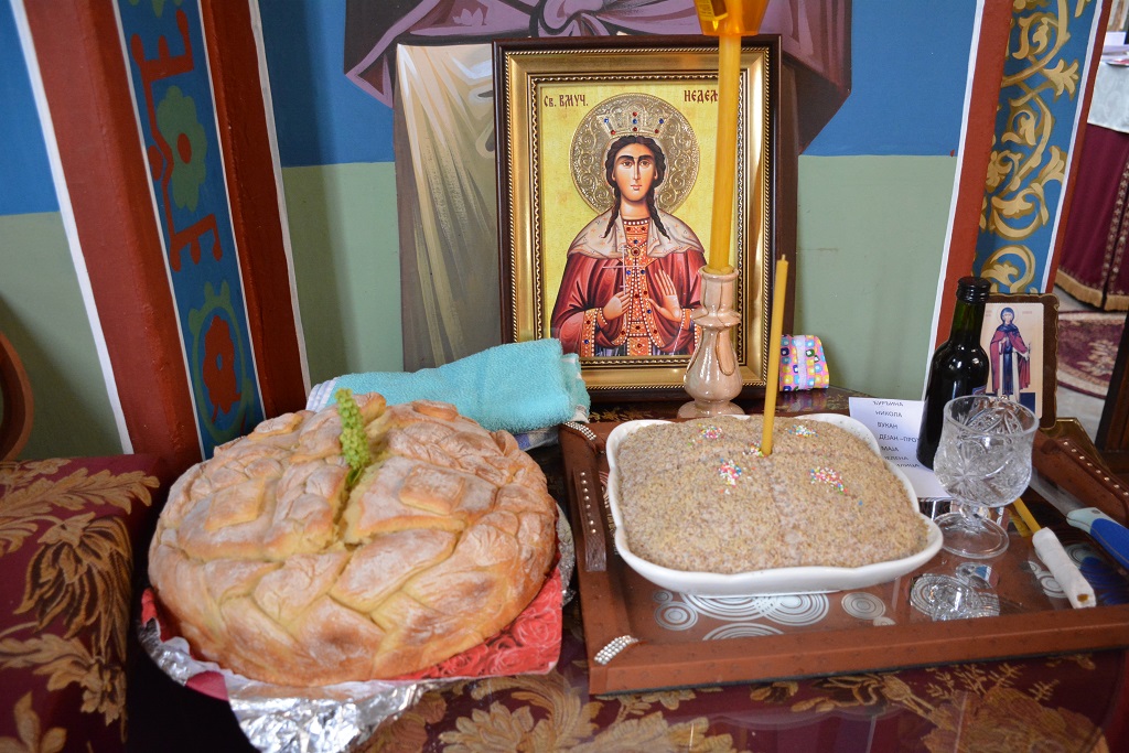 “Драга браћо и сестре, данас наша Црква и овај храм, као и ми сабрани у њему, прослављамо Свету великомученицу Недељу. Ова светитељка и угодница Божја била је сва саткана од вере, молитве, богомислија, љубави, а најпре од вере и издржљивости у тој вери. Када читамо њено житије и видимо шта је све издржала, какве муке, ради Христа и вере, заиста, нашем људском уму није лако да прихвати. Нашем људском уму ово бива невероватно, али оно што не може наш разум да обухвати, разум Божји зна и уме. Она је полагана на највеће муке, не због својих грехова, него ради вере. У то време је био велики ризик веровати у Богу. Тада је било довољно да неко исповеди да верује у Христа и себе осуди на смрт. Али, ти хришћани су, драга браћо и сестре, ишли са радошћу на смрт. Они су се радосно раздвајали од овог земаљског живота, знајући да је њихов живот горе на небу. Питамо се: ко је овој светитељки Божјој, која је стављана на велике муке, дао снагу да све издржи? Каква је то вера морала бити у њој да се не поколеба и уплаши? Како стоји у житију, њој се јави сâм Господ Исус Христос и исцелио је од свих рана и невоља, те још и рече: „Не бој се, Недељо, мукâ, благодат је моја са тобом“. То је овој светитељки дало снагу да издржи до краја. Јер, када јој се Господ јавио, заборавила је на све муке и невоље, када је чула глас Божји, није осећала своје ране, јер је све своје невоље, које је доживљавала, пренела на Христа. Благодат Христова, заиста, спасе ову великомученицу и од огња, зверова.