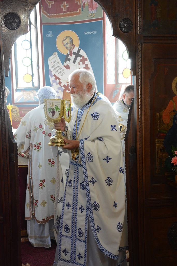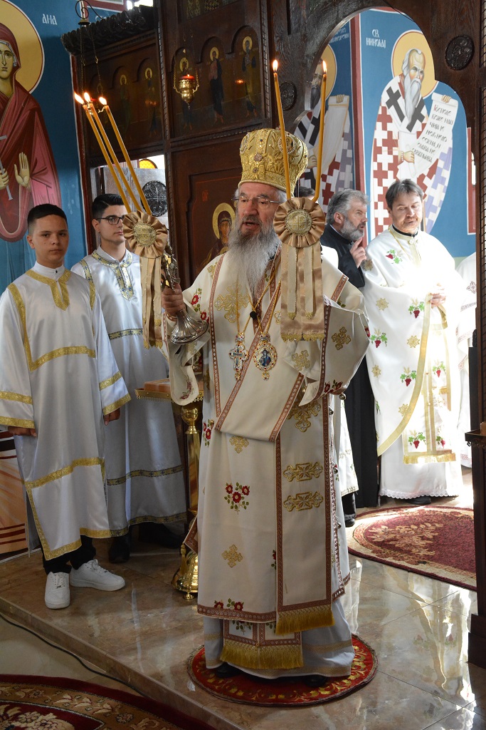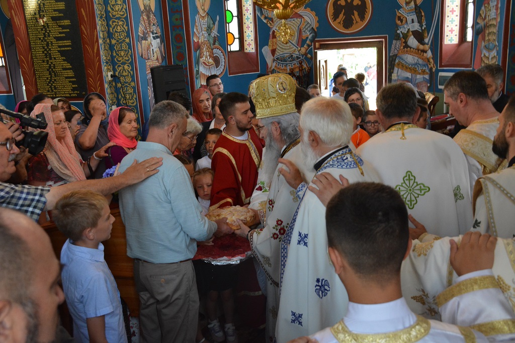 Након Свете архијерејске Литургије, Преосвећени владика је пререзао славски колач. Овогодишњи колачари били су: господин Радисав Чолић са надлежним парохом протојерејем Дејаном Петровићем, који је све присутне поздравио пригодним речима.