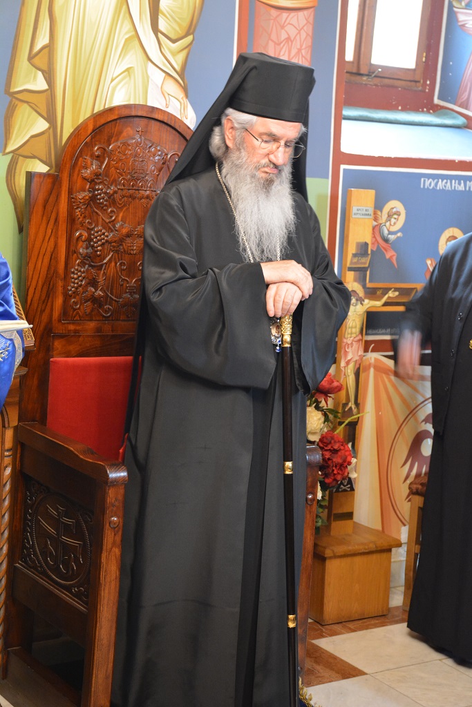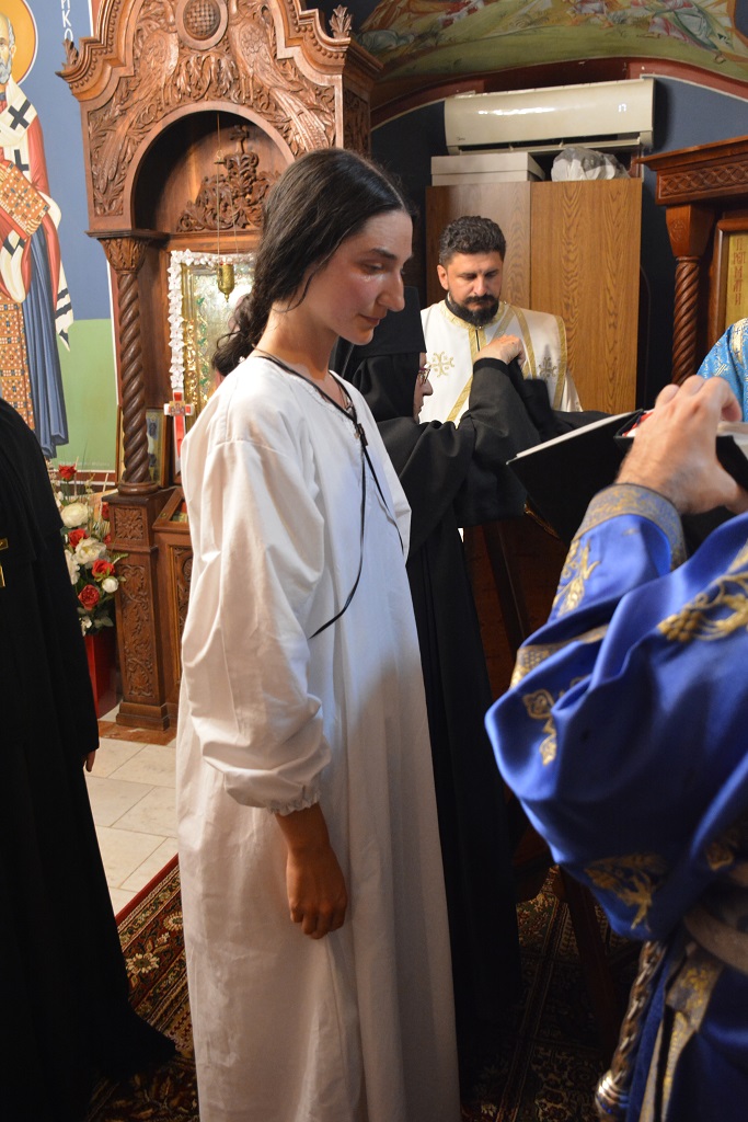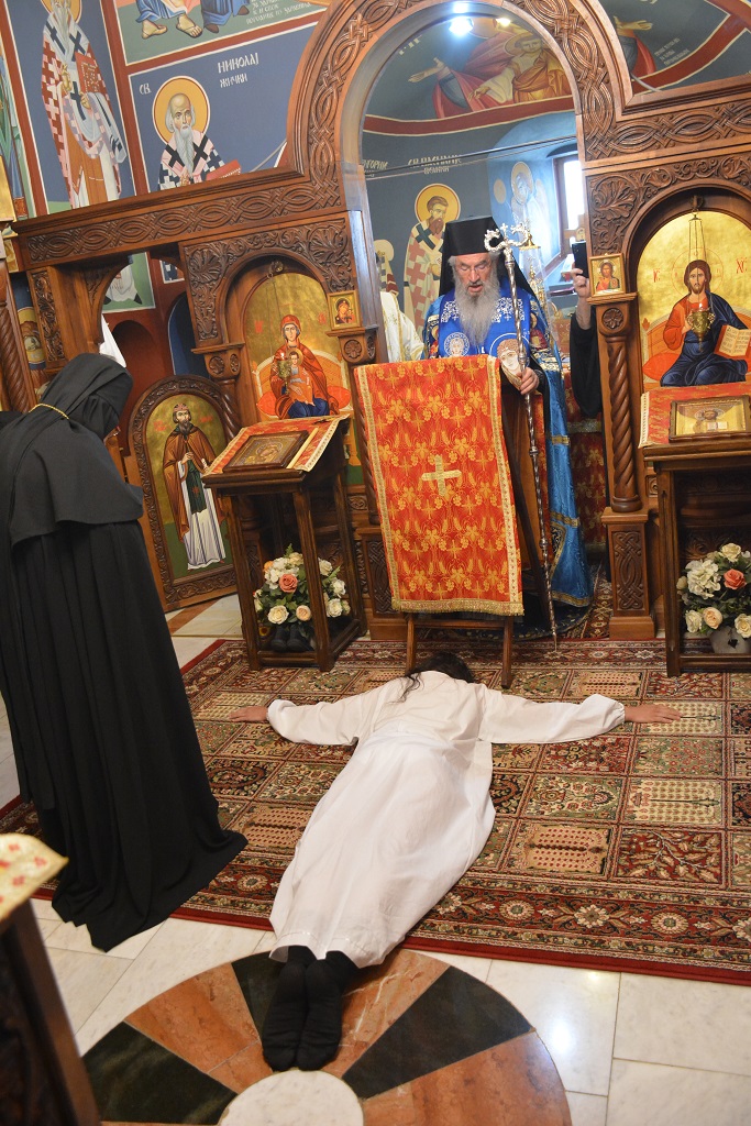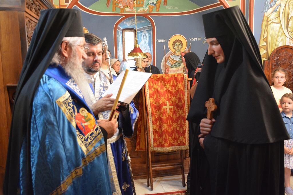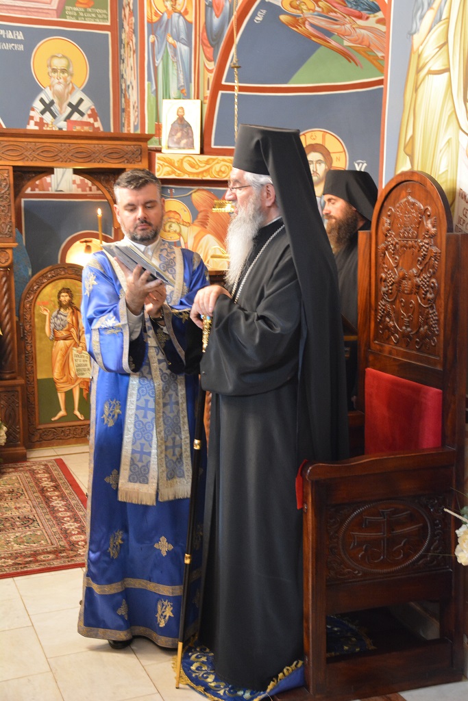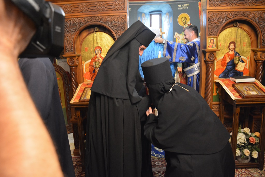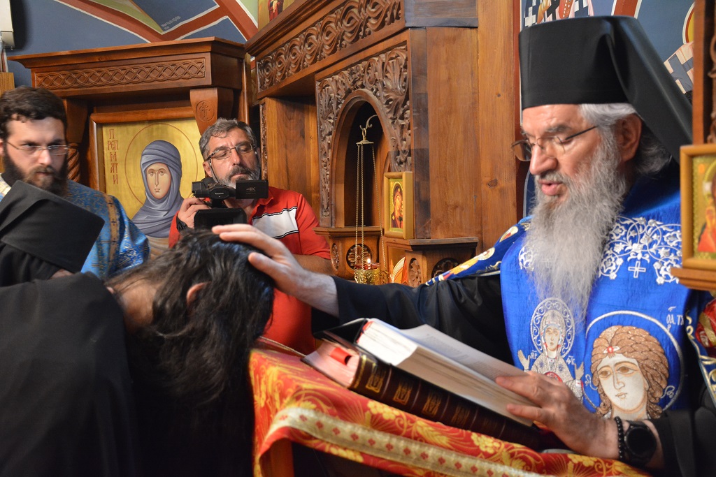 Преосвећени је посебно замолио сестру Јустину да не умује својим умом, то значи да никад неће бити послушна, него ће увек наћи неки изговор, да мисли да је овако или онако, а не како ти се каже. Преосвећени је подсетио на причу о послушнику Акакију, коме је игуман дао суво дрво и рекао му да га пободе и залива. Са вером је своје послушање извршио и Господ је наградио његово трпљење, његову послушност, његову веру и дрво је олистало и донело плод. Игуман је узео плод и унео у трпезарију и позвао братију да узме плода од послушности. Монаштво које нема послушност, које тера по својој вољи, то није монаштво. Преосвећени је посебно истакао да се сестра Јустина данас заручила Христу, да је данас невеста Христова, а Христос је женик свих нас, а да невеста од како је заручена, само мисли када ће да се сретне са својим жеником. Треба да исчекујемо женика Христа, али да му будемо верни, јер само оне који су у вери Господ награђује и даје им благослов, даје им вечност, даје им царство. Данас је сестра примила анђела чувара, али ни онај други није одступио. Замолио је да се усавршава у жртвеној љубави, да се жртвује за другу сестру, а љубав све покрива.