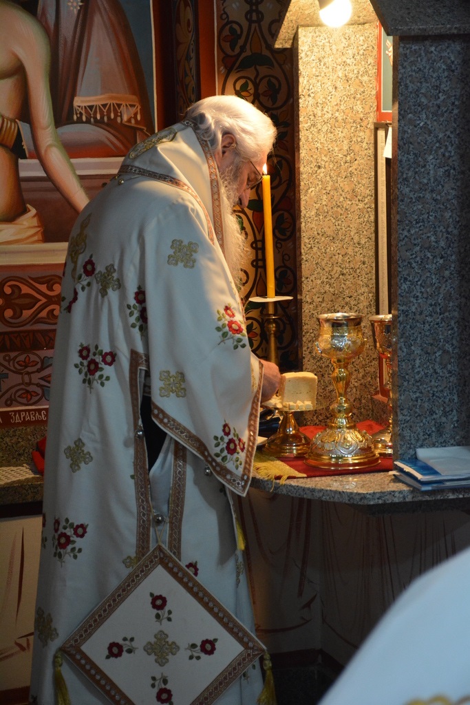 Епископу су саслуживали архијерејски намесник опленачки и рачански протојереј – ставрофор Миладин Михаиловић, протојереј – ставрофор Ђорђе Радишић, протојереј Дејан Динић, јереј Немања Радоичић, протођакон Иван Гашић.