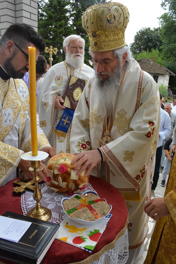 После заамвоне молитве владика Јован одржао је мали помен покрај споменика палим борцима у ратовима од 1912. до 1918. Након молитве уследило је сечење славског колача. Данашњи свечари били су породица господина Ђорђа Савић из села Трнаве.