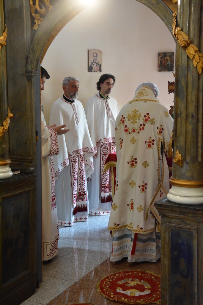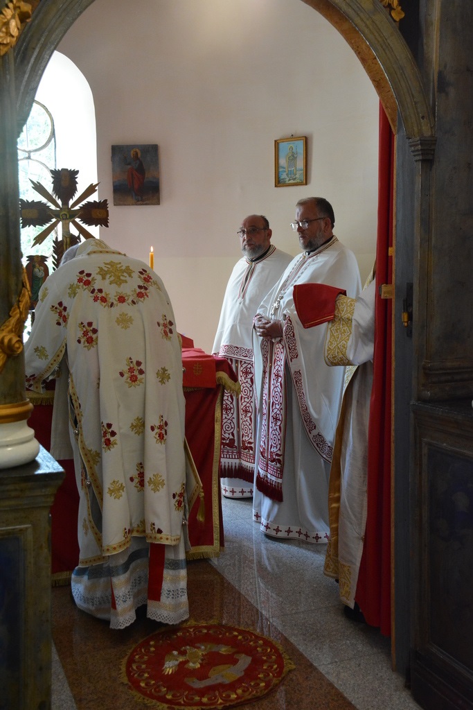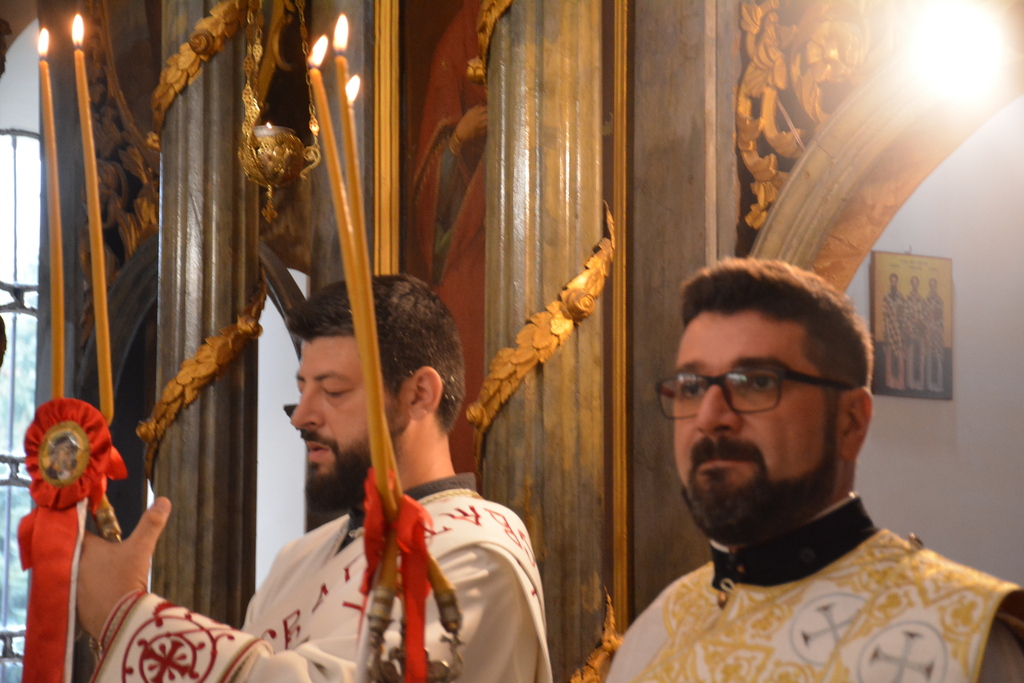 Преосвећеном Владици саслуживали су: архијерејски намесник космајски протојереј-ставрофор Љубиша Смиљковић, парох сопотски протонамесник Горан Лукић, парох сибнички протонамесник Горан јеремић, сабрат манастира Тресије јеромонах Марко (Марковић), протођакон Иван Гашић и ђакон Бојан Миленовић.