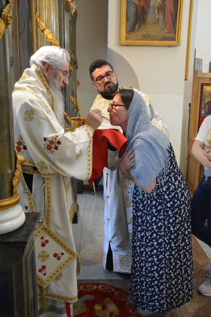 Сабрали смо се данас на овој Божанственој Литургији око Христа, око Његове трпезе. Данас ми овом Литургијом и сваком Литургијом постављамо трпезу Господњу, ону трпезу коју је Господ поставио пред своје страдање, трпезу на коју је Господ поставио себе. Зато и каже Христос: “Ко једе моје Тело и пије моју Крв има живот у себи“. Људи који се никада не причешћују такође живе, рећи ће неко. Да, они живе, брачо и сестре, али да ли је то Живот. Они не знају шта је суштина и шта је смисао живота. Они животваре, али немају смисао живота. Господа нама не забрањује да се ми бринемо и тело, али морамо знати да поред тела имамо и душу. Морамо имати меру када хранимо тело, али морамо и хранити и душу, а душа се храни Христом, браћо и сестре. Њена је храна, на првом месту, вера и Свето Причешће. И зато се и Литургија и служи ради Причешћа. Причешће је лек за нашу бесмртност. Бог нас је створио за вечност, а не за пролазност, и зато треба да живимо Црквом, да живимо заједницом Бога и људи и да се кроз заједницу спасавамо. Душа ће наша бити жива уколико је са Христом. али, ако је занемаримо, ми је онда одвајамо од Христа, и онда она умире“, рекао је Епископ Јован.