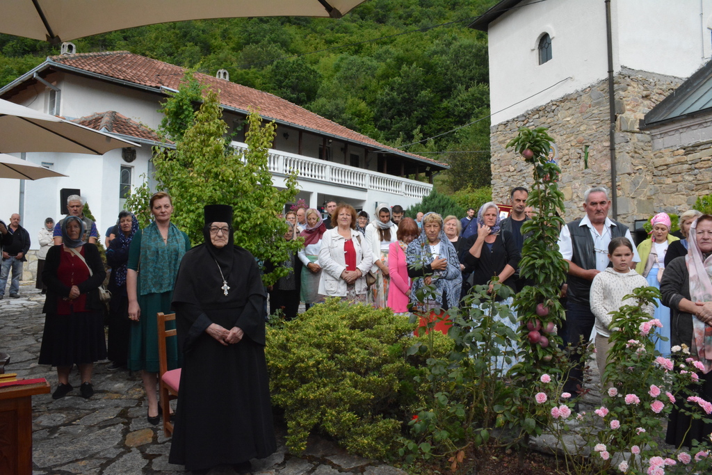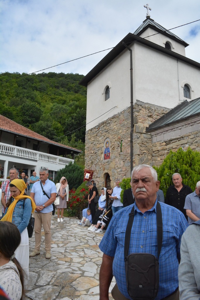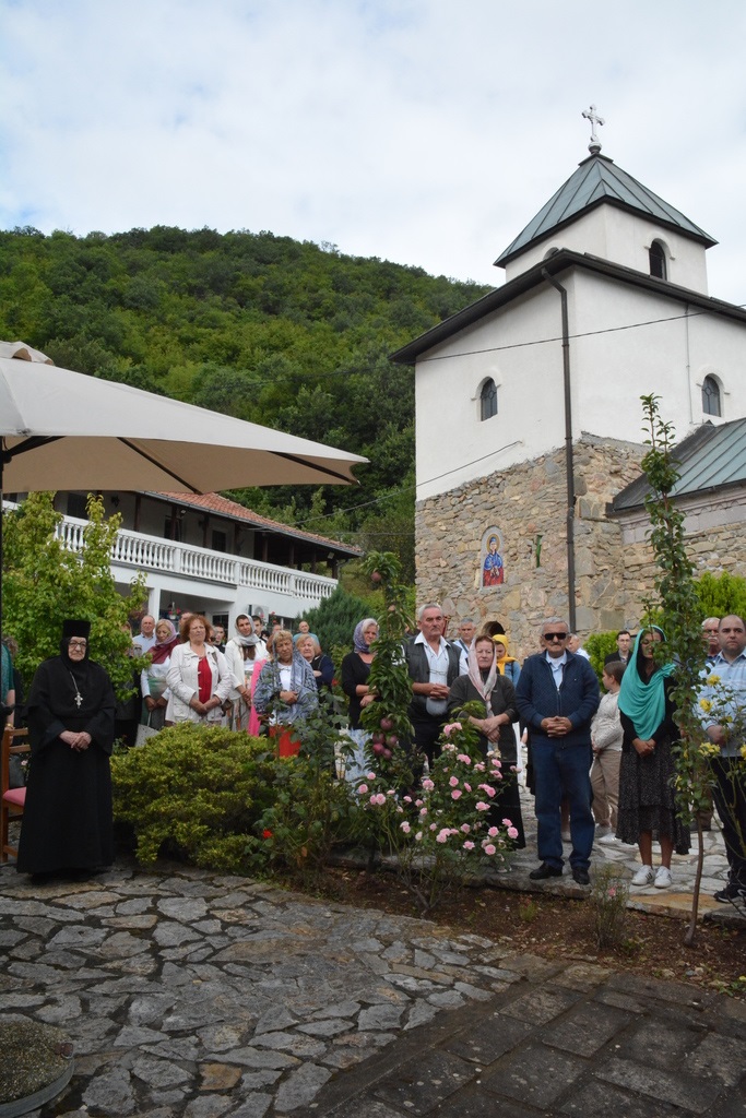 Светом Причешћу приступио је велики број верног народа који се данас сабрао у овој Светој обитељи. Након заамвоне молитве и крсног входа уследило је сечење славског колача. Овогодишњи свечар био је господин Милинко Петровић из села Љубичевца. Игуманија Февронија заједно са породицом господина Милинка Петровића припремила је славску трпезу на којој је у трпезарији манастира настављено данашње Литургијско сабрање.