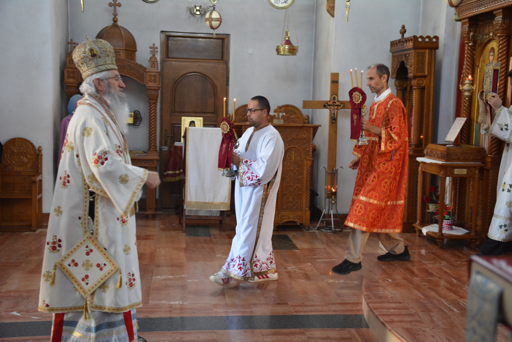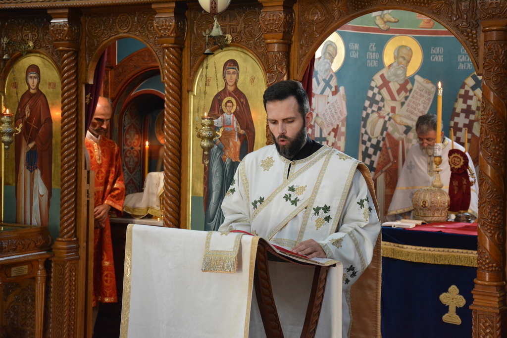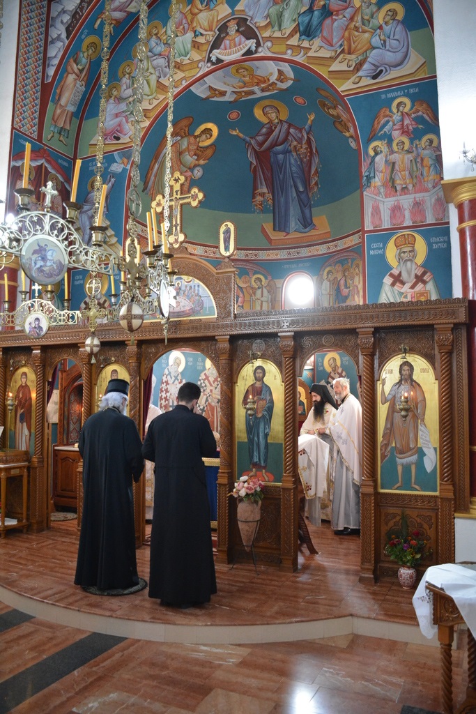 Преосвећеном су саслуживали: протојереј-ставрофор Драган Брашанац стрешина храма, протојереј Мирољуб Миладиновић, јерођакон Јован (Прокин) и ђакон Александар Ђорђевић.