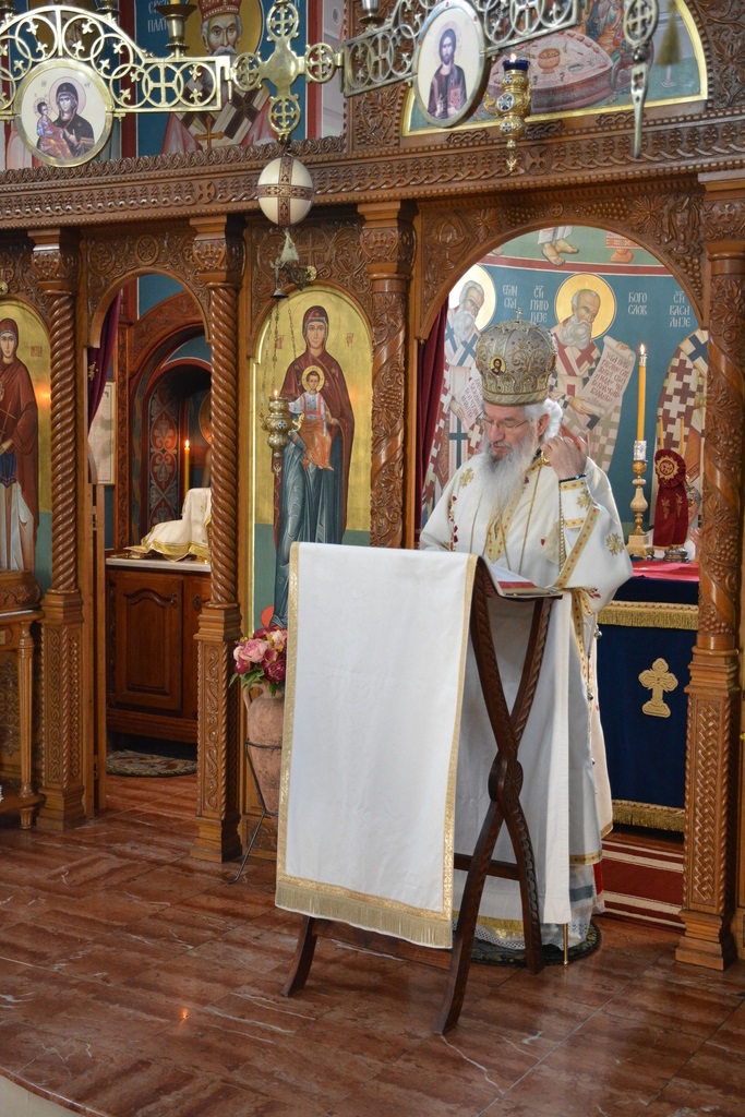 По прочитаном Јеванђељу и Апостолу, у наставку литургије Преосвећени се осврнуо на речи апостола Павла који нам даје поуку и савет како треба да живимо у овом животу да би задобили благодат Божију и да би се спасили. Свети апостол Павле нам говори како треба да чувамо своју савест. “Браћо ово је наша хвала сведочанство савести наше да у простоти и искрености Божијој не по мудрости телесној него по благодати Божијој живесмо у свету а особито према вама.” Апостоли су увек нападани што су проповедали Христа па су их називали свакаквим именима па су говорили да су свакакви људи. Зато апостол каже: “Говоримо вам о сведочанству савести наше”. Оно што говоре не говоре од себе него оно што Христос говори. Они Христом живе и њихова је савест била савест Христова. О чему треба да размишљамо браћо и сестре је да сачувамо своју савест колико је могуће мирну. Да би потврдили речи нашег народа који каже: мени је савест мирна. Велико је питање ко од нас може да каже да му је савест мирна? Не може нико. Зашто? Зато што смо сви грешни. Чим човек се огреши о Бога, савест му је помућена. Али ми имамо разне степене савести. Имамо чисту савест, и нечисту савест. Онај који има нечисту савест он није свој човек, њему ништа није чисто. Он свуда види нечистоту, јер је он сам у нечистоти. Па и светињу види као нечисту. Имамо савест која је успавана. Важно је да схватимо да нема спаљене савести. Имамо успавану савест која ће се кад тад пробудити. Оци управо говоре да аако нам се никада не пробуди савест у овом животу пробудиће се онда када будемо напустили овај земаљски свет и изађемо пред лице Божије. Тај тренутак када се савест пробуди то ће бити вечност за онога човека који је држао успавану савест и који није држао чисту савест… Треба да схватимо шта је слава и хвала хришћанима о којој говори Апостол Павле? То је живот у Богу. И то је живот по Богу. Какав је то живот у Богу? То је живот у простоти и чистоти Божијој. Односно у једноставности и чистоти Божијој, тј. у непрекидности Божанског добра, истине, правде и љубави. Ко то држи у себи може рећи да има чисту савест. То је живот у благодати Божијој, односно живот у Христу, јер он је управо благодат Божија. Ако нас напусти благодат Божија ми смо напуштени, онда смо пропали духовно. Благодат Божија лако се задобија ако се верује, али лако се губи. Ако изгубимо благодат Божију губимо Духа Светога у исто време, и онда у нама не дејствује Дух Свети. Онда дејствује Дух наш и дух овога времена. А дух овога времена говори другачије од Духа Божијега. Дух овога времена нам говори да све што постоји само на овоме свету, и да после овога света нема ништа. Дух Божији нам говори да постоји вечност. И зато апостол Павле говори: “Духа Божијега не гасите у себи”. Дух нас води и руководи, учи како треба да живимо у простоти и чистоти, да живимо у смирености, не у гордости, надимању. Онај који се надима нема љубави. Знање надима а љубав изграђује. Које знање? Оно које нас одваја од благодати Божије, од Бога, па мислим ја сам стекао неко знање па сам ја другачији човек. Џаба су нам сва знања овога света ако нас та знања не приводе Богу. Она су нам потребна, али не сме знање да нас одвоји од Бога. Ако гледате историју рода људскога, видећете да они најпаметнији који мисле да су стекли сву мудрост овога света они су највећа зла чинили овоме свету. Зашто? Зато што 