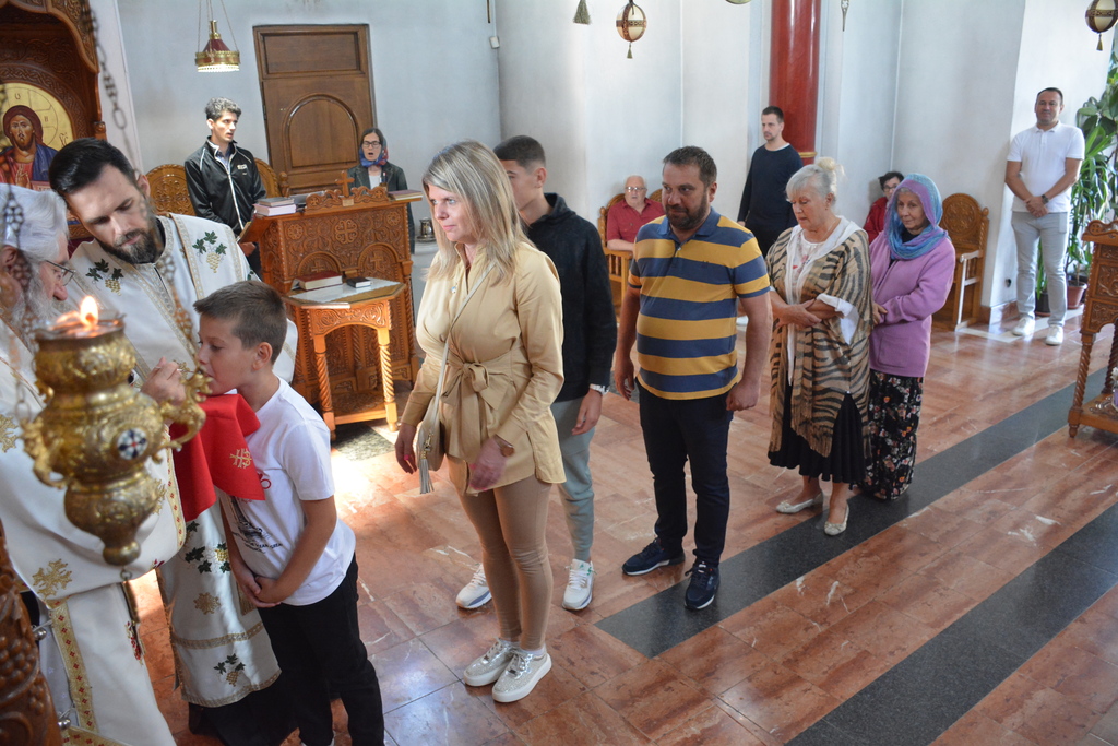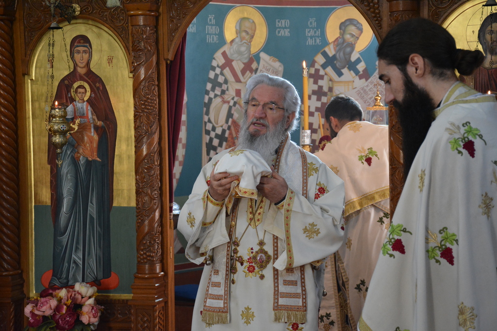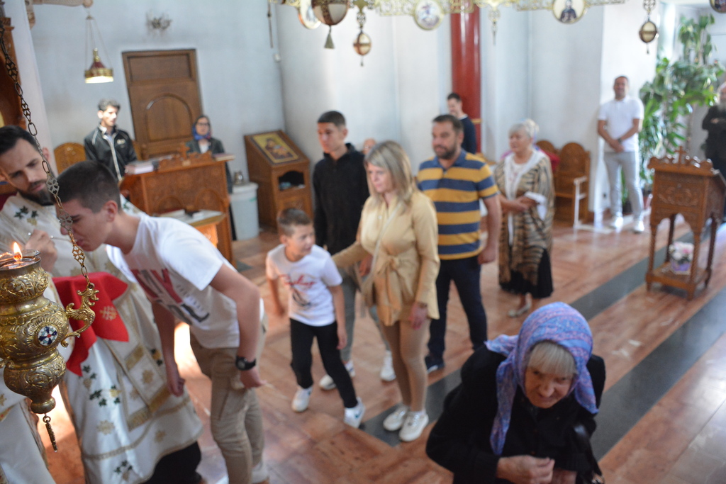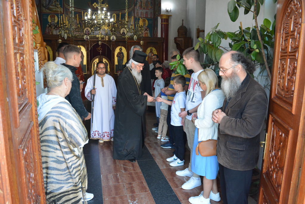 У наставку свете Литургије Преосвећени је причестио верни народ и поделио свој очински благослов.