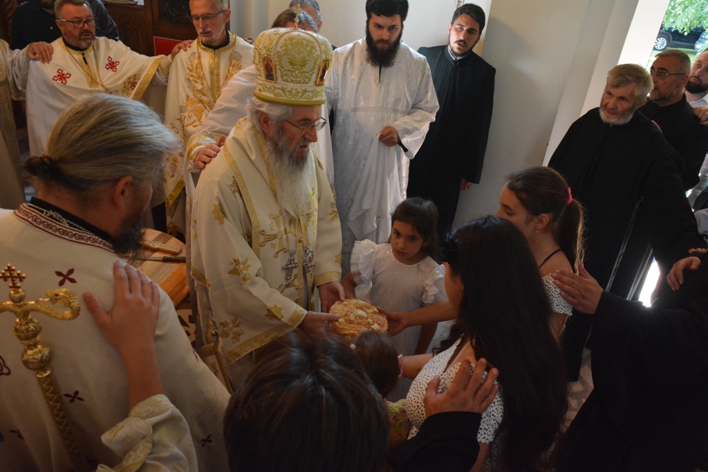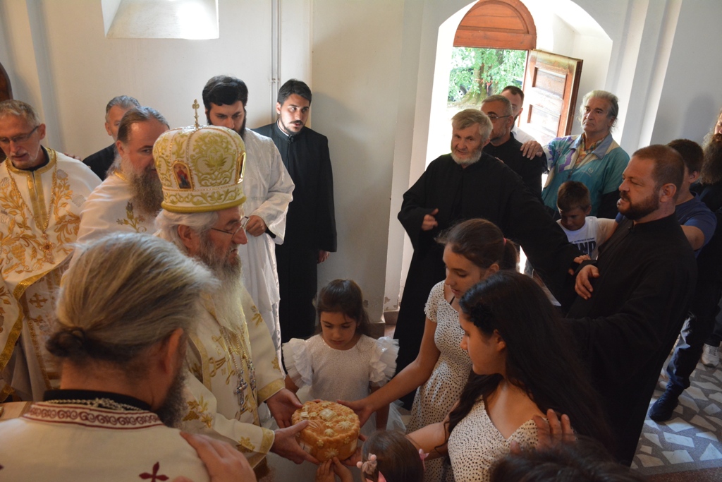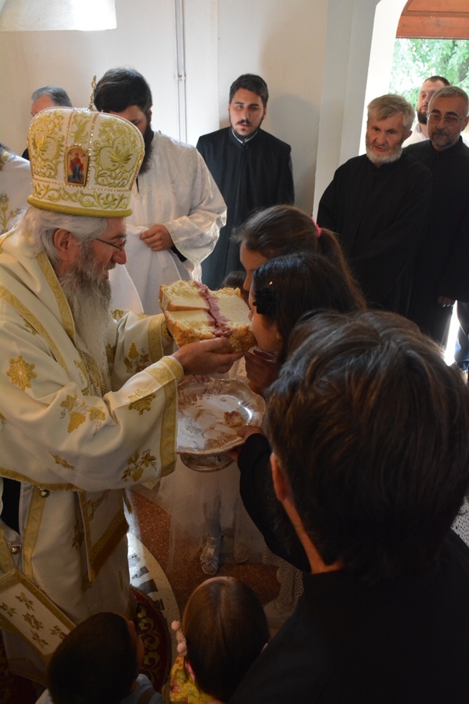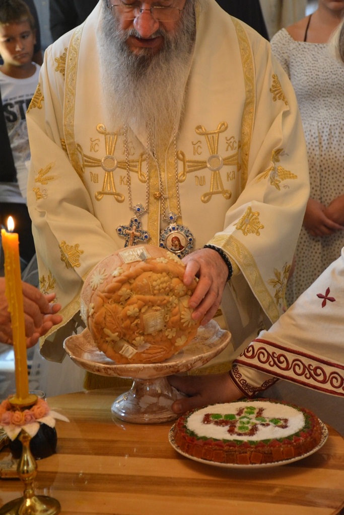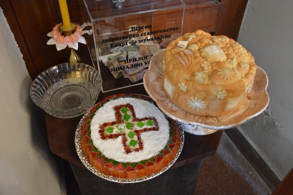 На крају Свете Литургије пререзан је славски колач и уприличена је трпеза љубави.