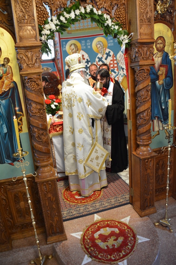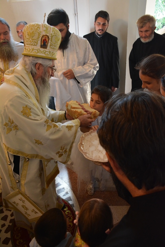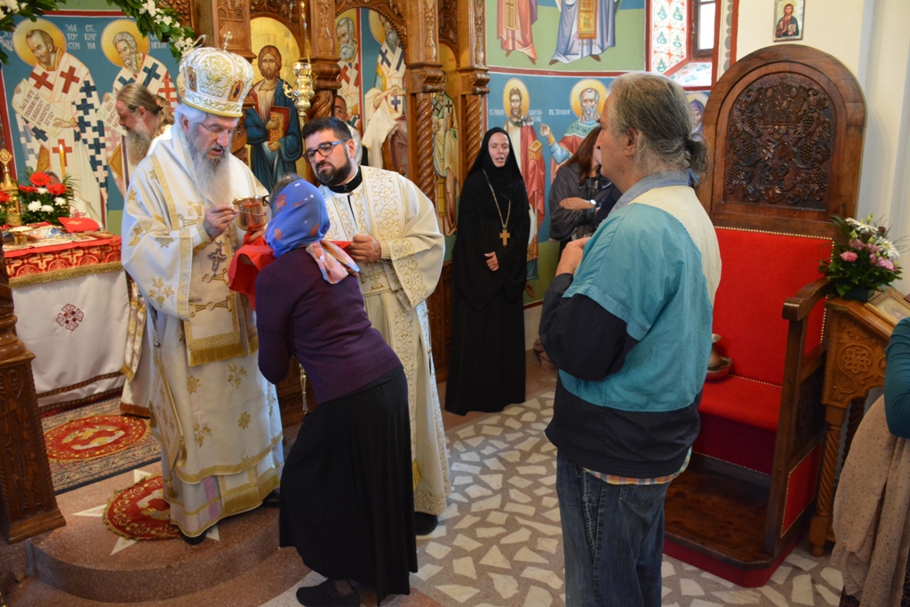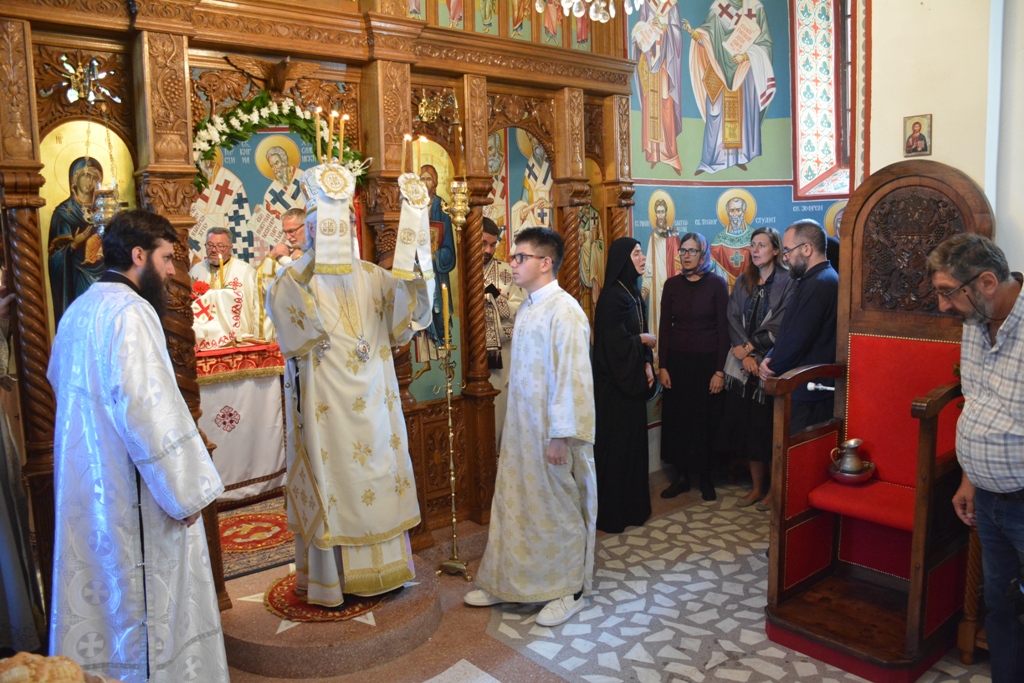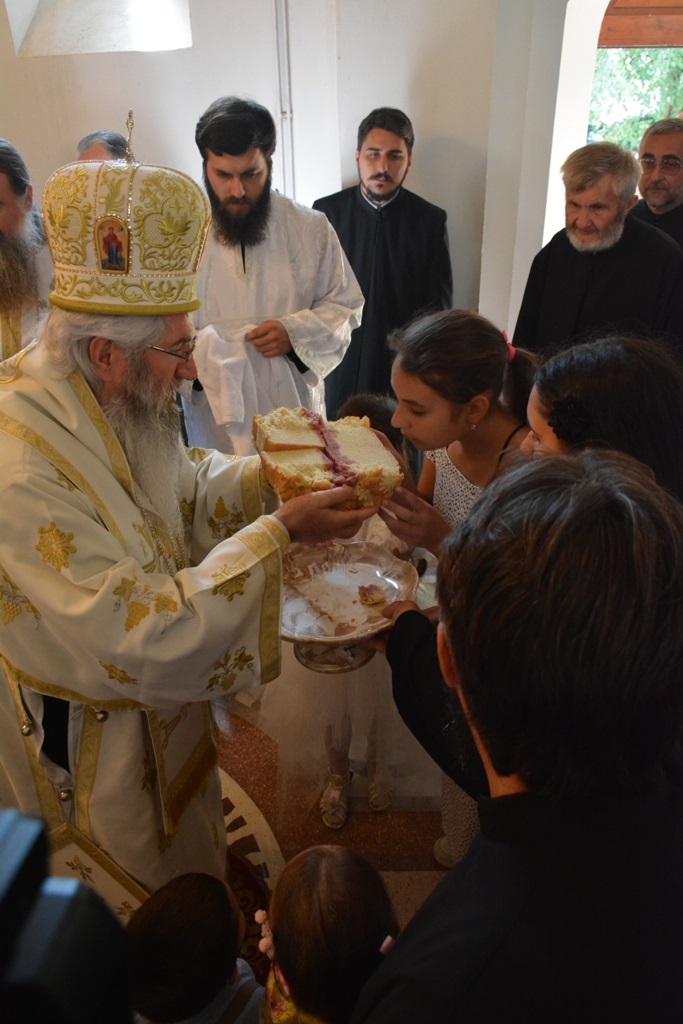На крају Свете Литургије пререзан је славски колач и уприличена је трпеза љубави.