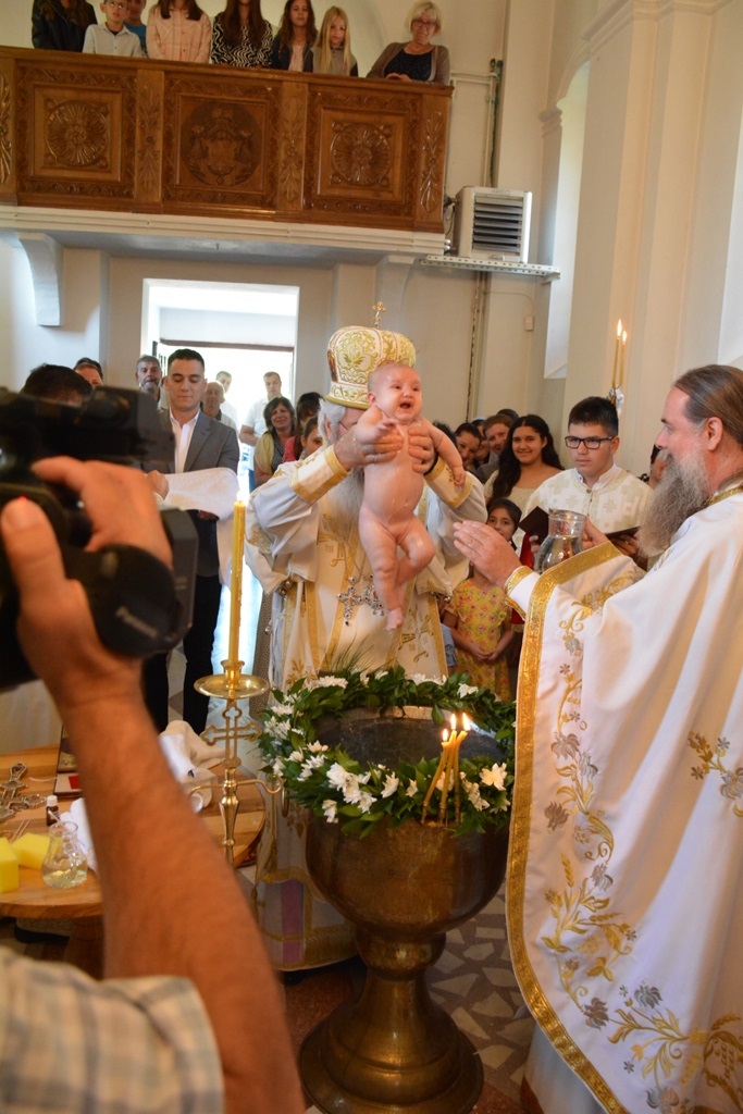 “Ето данас је црква Христова и небеска и земаљска постала богатија за једног члана, за нашу малу Николину, она је данас крштена у име Христово, она се у Христа обукла, она се у Христа крстила, она је данас примила Свету Тајну Крштења и постала члан и земаљске и небеске цркве. Па зар то није велика радост? Данас је њено ново духовно рођење. Данас она прима две Свете Тајне, Тајну Крштења и Тајну Светог Причешћа. Причешће је уставри печат крштења, браћо и сестре. Зато се крштење и није могло замислити ван Литургије. Данас је Николина све то примила и ушла у Тело Христово, ушла у заједницу Бога и људи, која се зове Црква”.