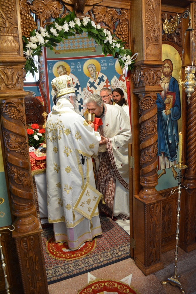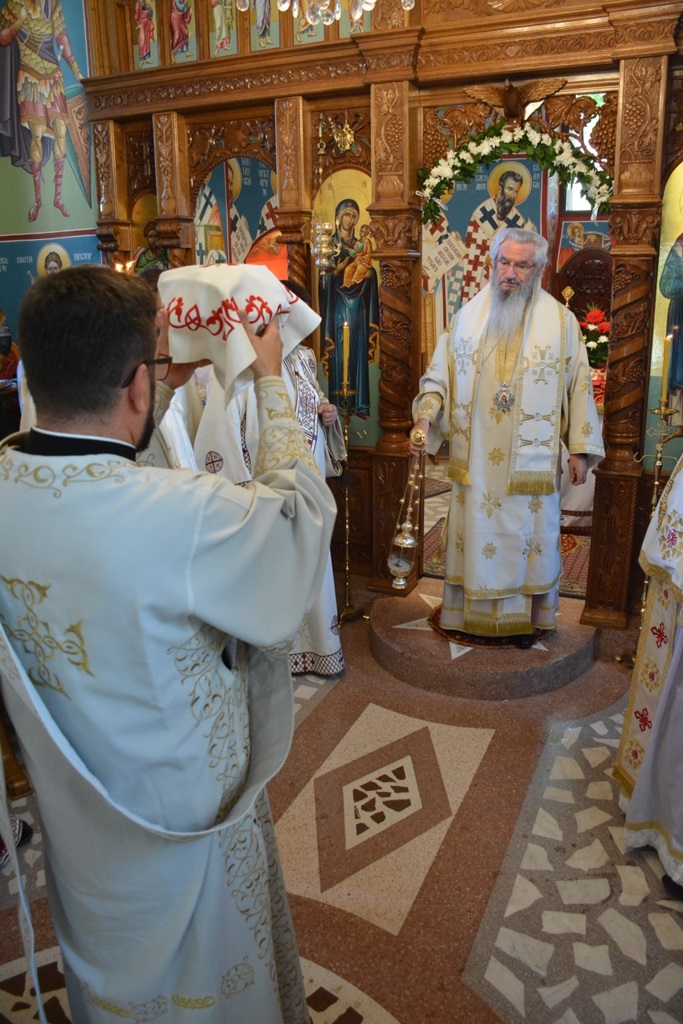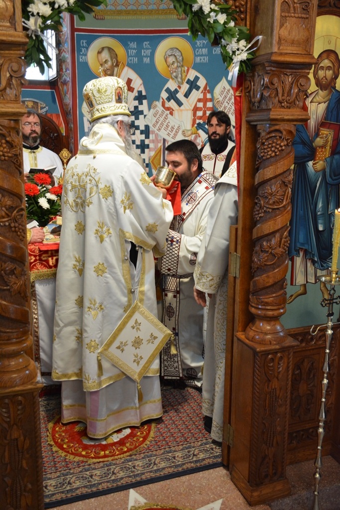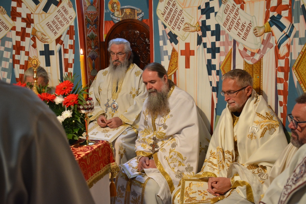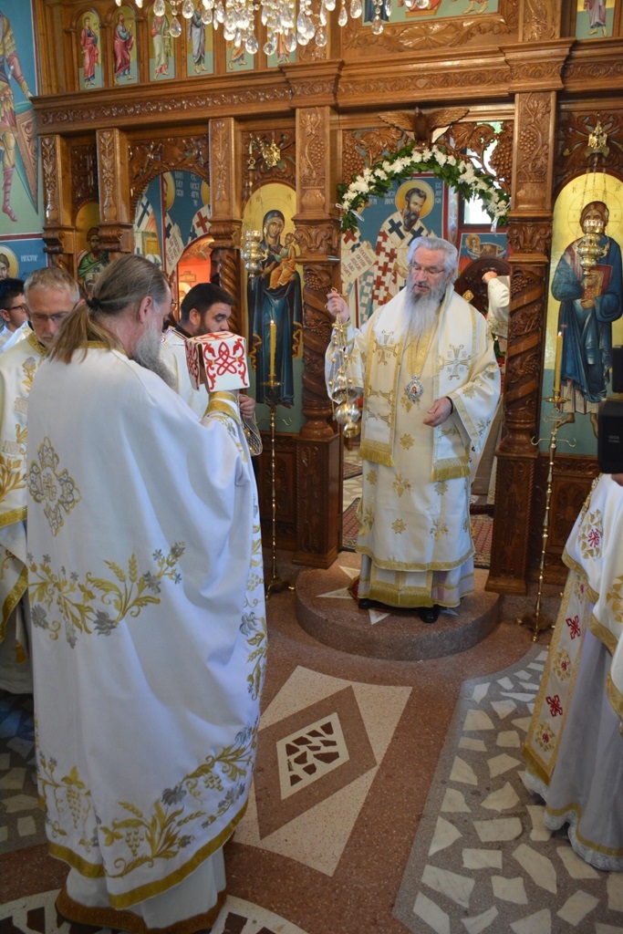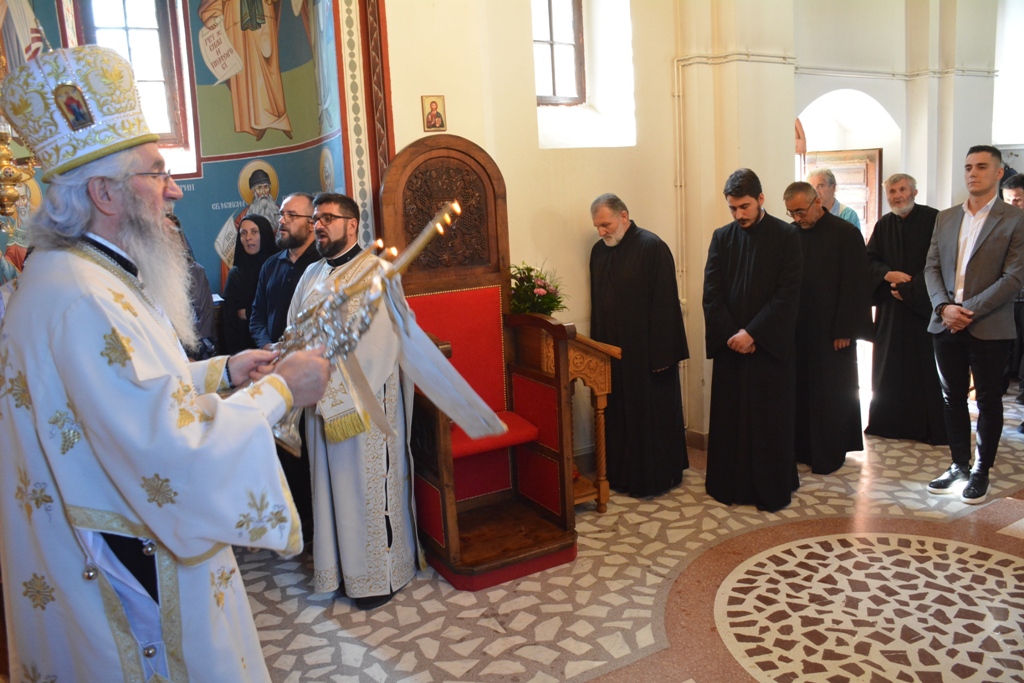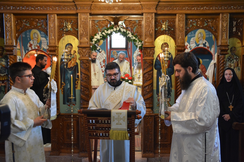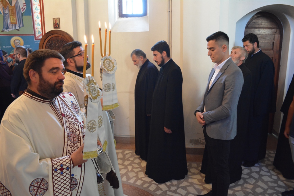 Епископу су саслуживали високо преподобни архимандрит Петар, игуман манастира Пиносава, архимандрит Онуфрије, игуман манастира Денковац, јеромонах Пајсије, настојатељ манастира Светог Пајсија у Шуљковцу, протојереј ставрофор Милић Марковић, архијерејски намесник Левачки, протојереј ставрофор Драгослав Цветковић и јереј Бојан Стојадиновић.