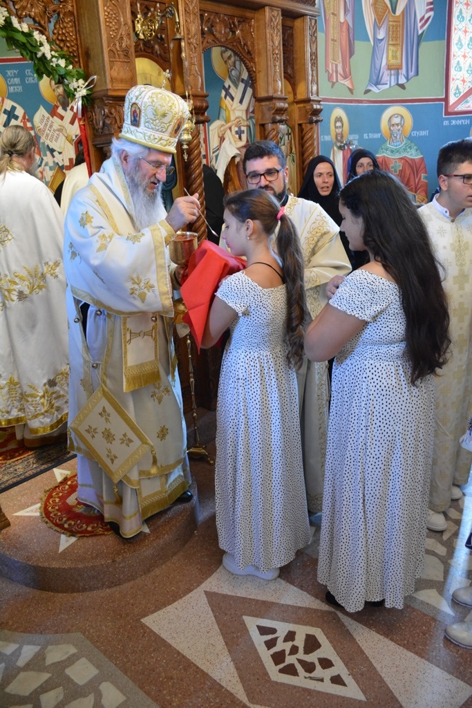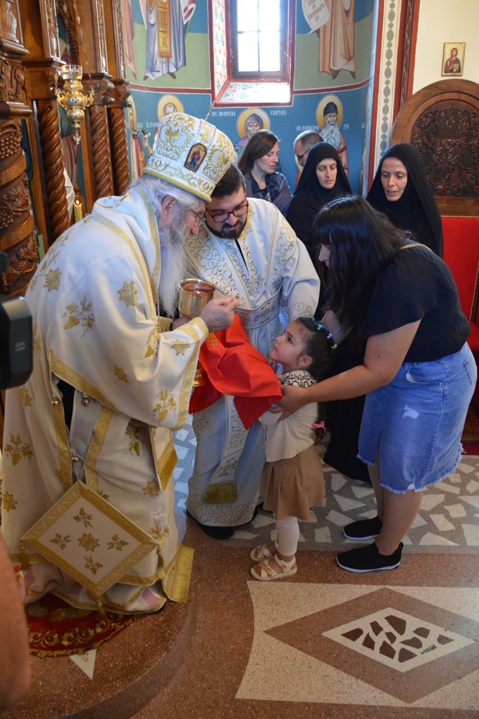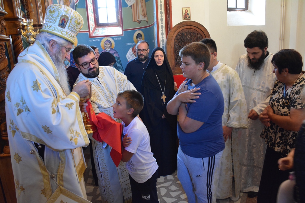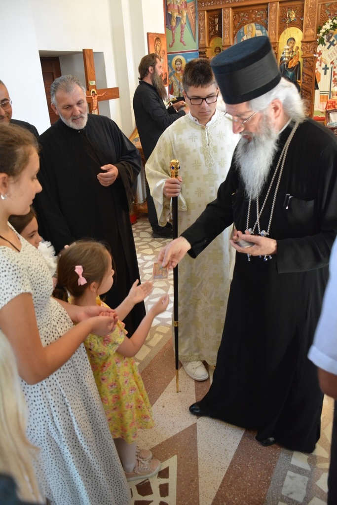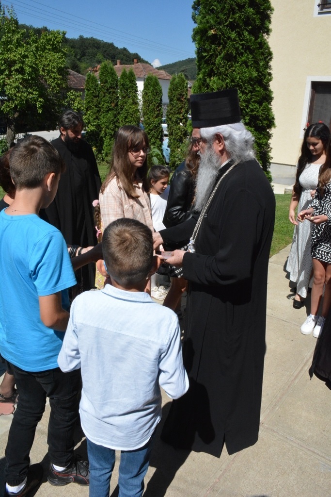 У суботу, 12. августа 2023. године, када наша Света Црква слави преподобну мати Ангелину, Његово Преосвештенство Епископ шумадијски Г. Јован служио је Свету Архијерејску Литургију у храму Светог Теодора Тирона у Великим Пчелицама.