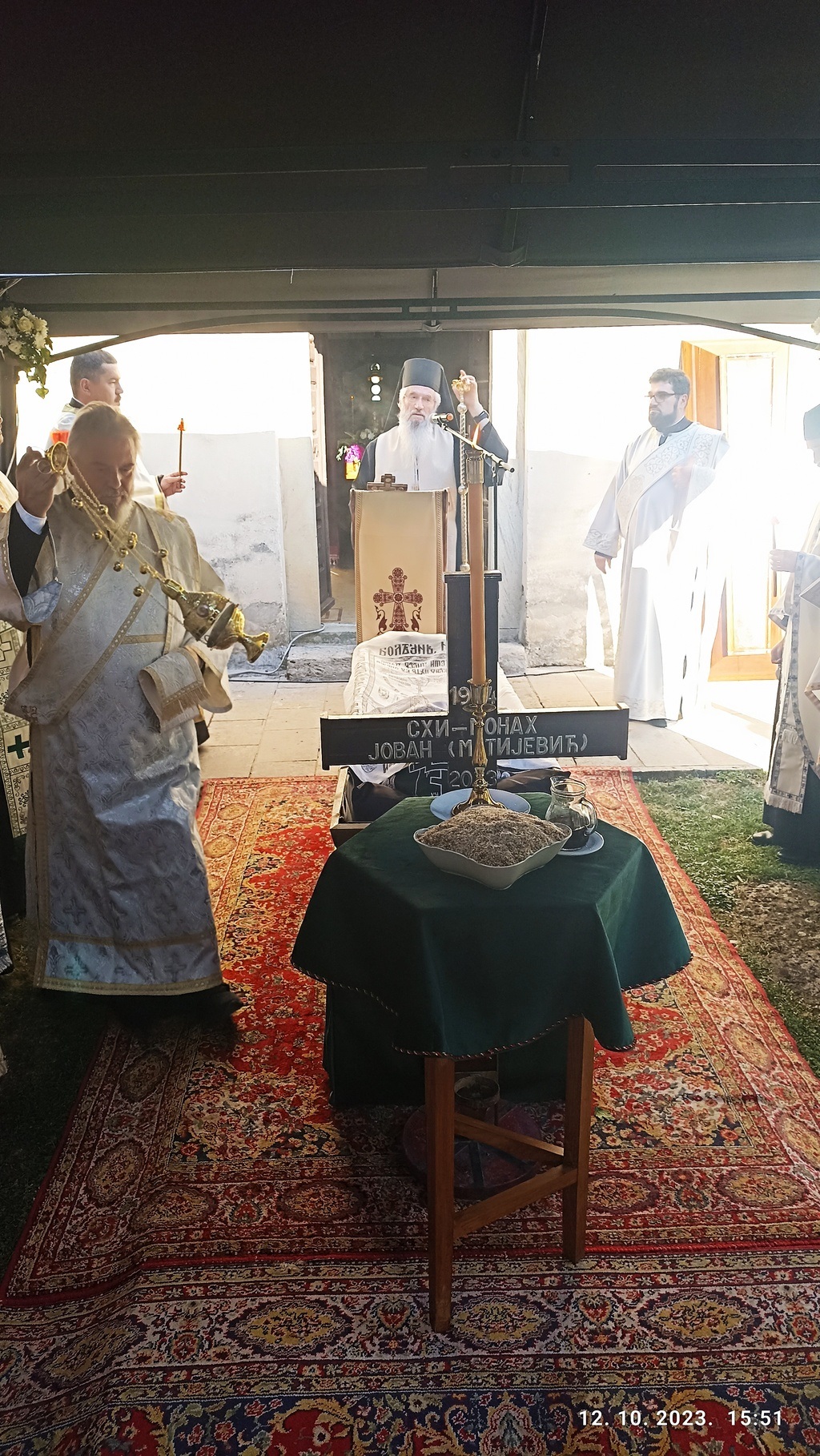 Пре три дана затворила се овоземаљска књига нашег оца Јована, али у исто време отворила се она небеска књига. Она књига за коју је сам Спаситељ рекао апостолима кад су му рекли: „Господе,“ каже, „у Твоје Име и демони нам се покоравају.“ А Христос им каже: „Немојте се толико томе радовати што вам се у Име Моје и демони покоравају, него,“ каже, „радујте се што су имена ваша написана у Књизи Живота.“ И заиста познавајући оца Јована знам, верујем да је његово име заиста записано у Књизи Живота. Односно да је он својим животом овде на земљи, својом вером у Бога, надом у Бога, вером у бесмртни и вечни живот, сам уствари записао своје име у Књизи живота, то јесте у Књизи вечности у Царству Небеском. Ми верујемо у Христа, браћо и сестре, ми верујемо у радост победе над смрћу, ми верујемо у тријумф живота над смрћу али у Христу и са Христом. Он је тај кроз кога верујући човек, живећи овде Христом, и у заповестима Његовим кроз Њега види и сада, или осећа боље речено, тај вечни живот, тај непролазни живот у Царству Небеском. Христос је заправо, браћо и сестре, носилац бесмртности, носилац вечног живота, дародавац тог вечног живота и свима нама који верујемо у Њега. Ето, шта добијамо од вере, браћо и сестре? - Добијамо вечни живот. А шта губимо кад губимо веру? – Губимо и вечни живот, губимо онај вечни живот који се састоји у живљењу, односно у гледању Лица Божијег. Лишавамо се радости божанске, лишавамо се свега онога што је Господ учинио ради нас и ради нашег спасења. Ето, понављам, шта нам значи вера. А она нам значи, браћо и сестре, да вером усељавамо Бога у себе. И како каже апостол Павле: „Вером ходимо а не знањем!“ Људско знање је површинско знање, ма колико оно било дубоко. И уствари, знање које човека не приводи Богу и које му не даје бесмртност, то знање, браћо и сестре, је уствари погибао за човека. Зато каже апостол Павле да знање надима, а љубав изграђује. Погледајте, браћо и сестре, куд да лутамо? Шта да тражимо друго знање? Шта да се мучимо: „Да ли сам на овом путу? Да ли је мој пут прави?“ Па погледај у Еванђеље, завири у Еванђеље. Огледај се у Еванђељу. Али слушај Еванђеље и твори Еванђеље колко ти је могуће. Па ће ти све бити јасно. Не само овде у овоме свету него и у ономе. Истина, и овај и онај свет су тајна велика. И човек је тајна, браћо и сестре. И у ту тајну не можемо да завиримо а још виче не можемо да је одгонетнемо без Бога и без вере. Е том и таквом вером задојен је наш отац Јован још у дому својих родитеља. И са таквом вером он је почео да корача и да живи целим својим земаљским животом који му нимало није био лак. Колика је његова вера била у Бога исто толика је била и вера његова у загробни живот. Знао је он, рекох, научио је од својих родитељада је овај живот привремен, да је овај живот кратак, али врло значајан за нас, браћо и сестре. Значајан. Бог нас је послао у овај свет да живећи овде праведно, еванђелски, по заповестима задобијемо Царство Небеско. И оно се овде започиње, да се задобија. Али се остварује у вечности пред Богом. Зато не смемо да занемаримо ни овај живот, али треба да знамо шта треба дати овом животу, а шта треба дати за онај живот горе. Дакле, браћо и сестре, отац Јован је у свом животу испунио ону Христову заповест да цару да царево а да Богу да Божије. И када је дао цару царево, када је дао све оно што је требало да да овоме свету и када је дао својим м