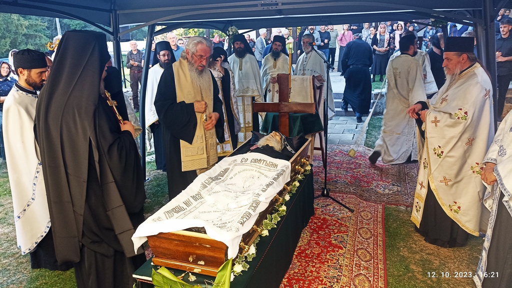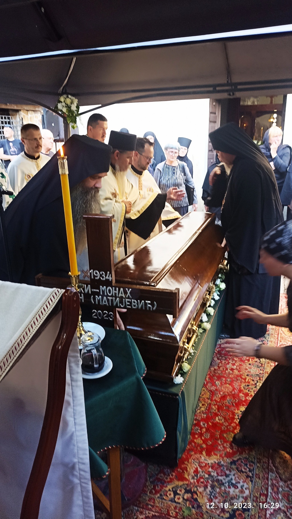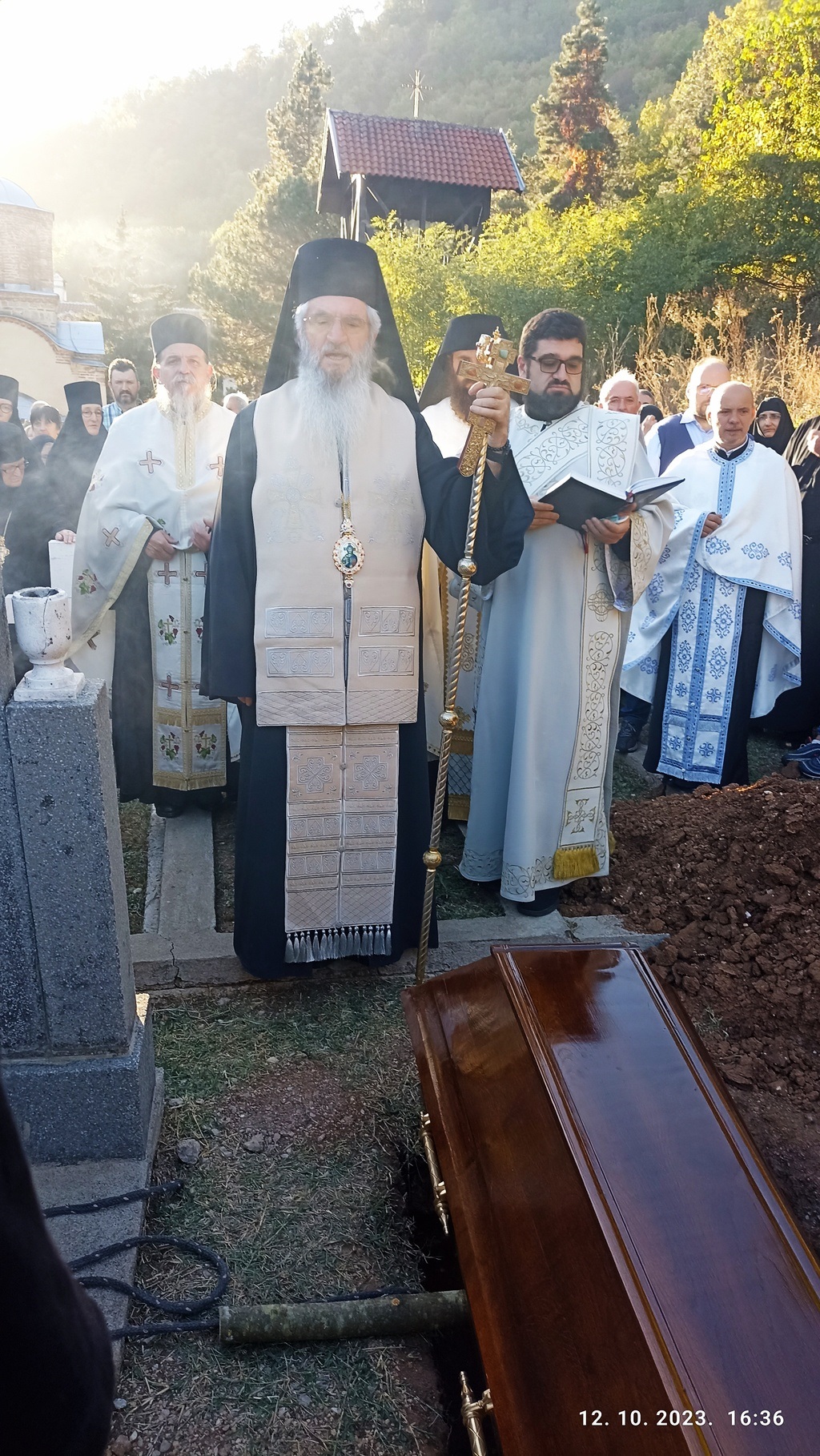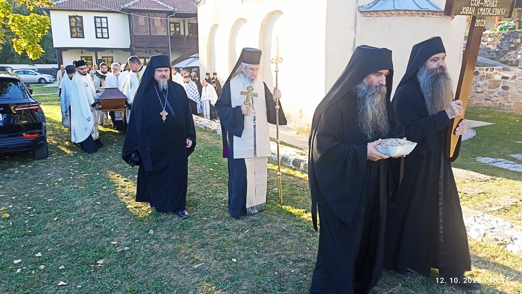 Монашко опело уз молитвено учешће и присуство бројног свештенства, монаштва из манастира: Светог Стефана код Врања, Тумана, Радошина, Благовештења, Никоља Рудничког, Грнчарице, Дивостина, Ралетинца, Пиносаве, Саринца и Светог Пајсија, родбине и верујућих, новопредстављеном схи-монаху Јовану служио је, у четвртак 12./29. октобра, Његово Преосвештенство Епископ шумадијски Господин Јован.