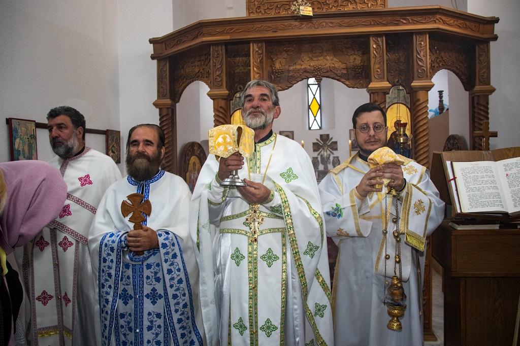 Евхаристију је служио протојереј ставрофор Милан Томић, парох чумићки, коме су саслуживали протонамесник Горан Живковић, парох лаповски, протојереј Младен Ђурановић, парох-домаћин, и ђакон Марко Арсенић из Лапова.