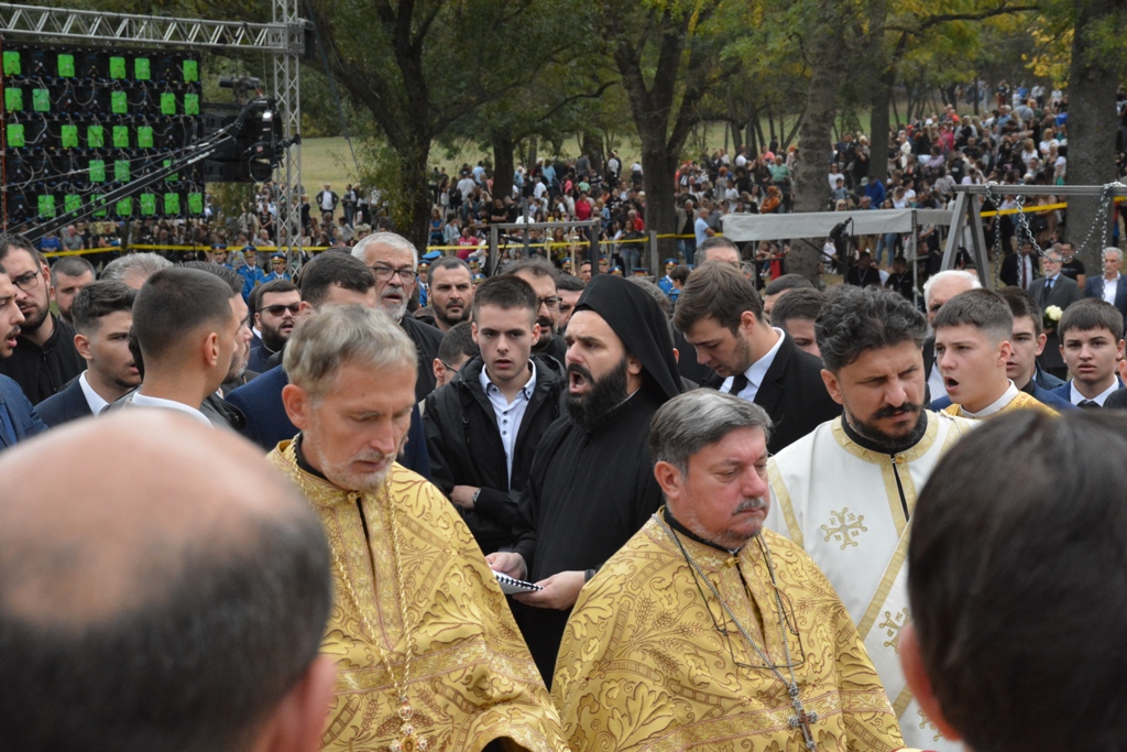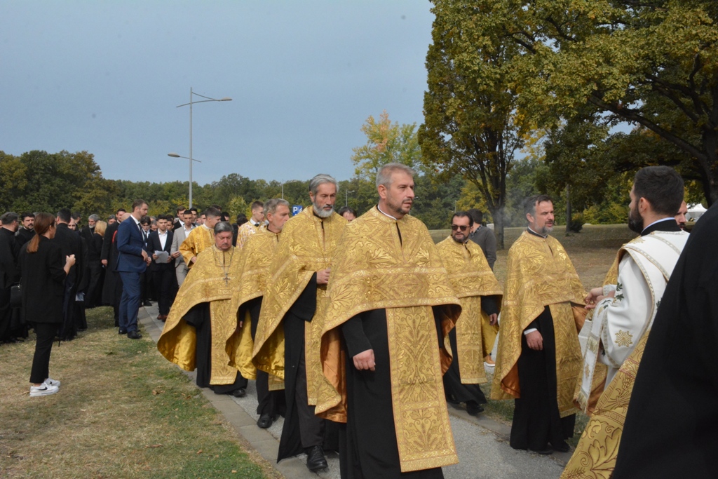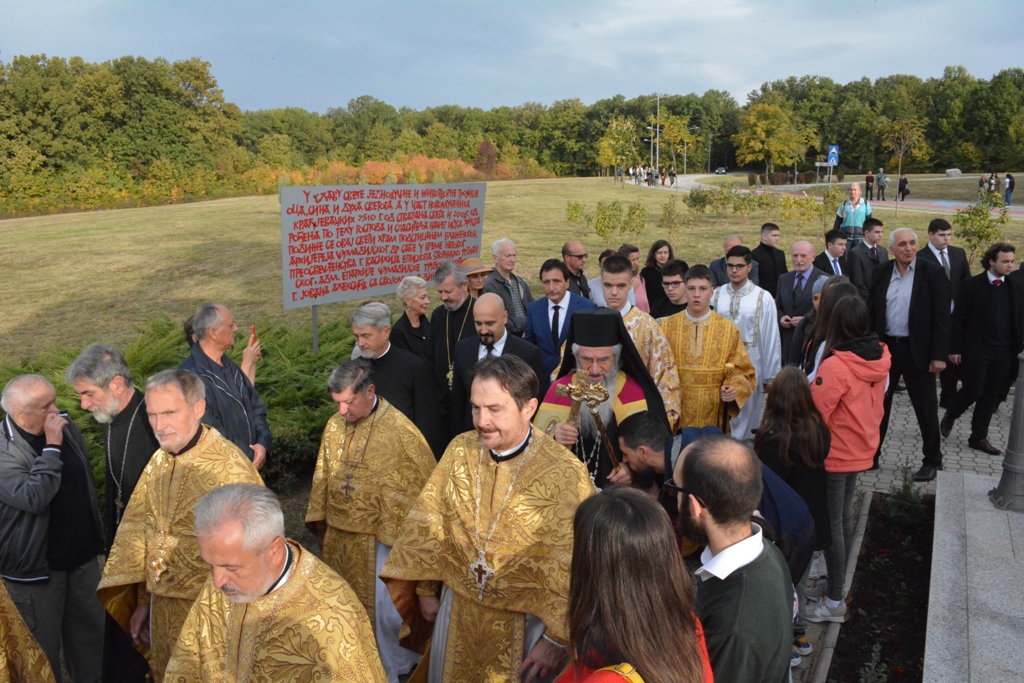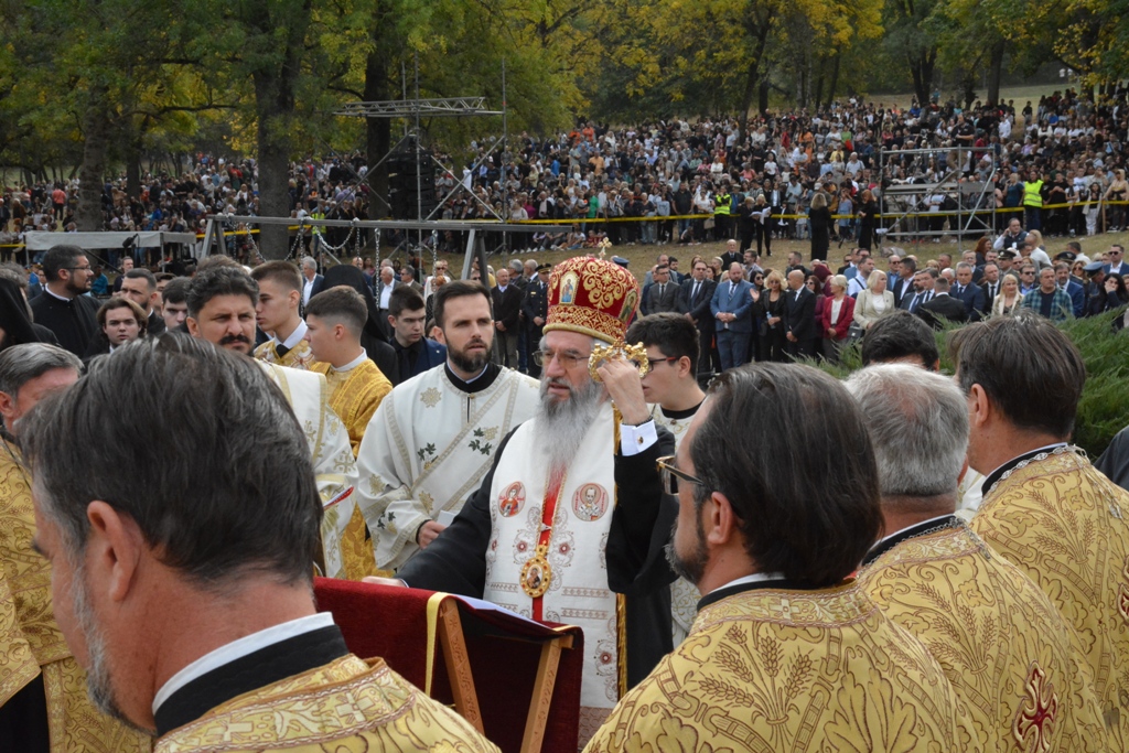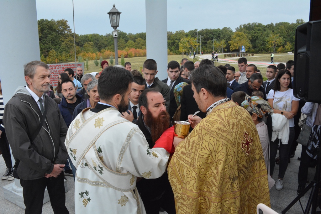 Након Свете Литургије Владика Јован, заједно са свештенством и верним народом повео је литију до места где су стрељани недужни ђаци и тамо са свештенством одслужио молебан Новомученицима.