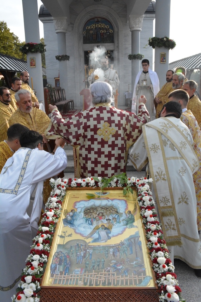 Његово Преосвештенство Епископ шумадијски Господин Јован уз саслужење свештеника крагујевачког и лепеничког намесништва: протојереја – ставрофора др Зорана Крстића, протојереја – ставрофора мр Рајка Стефановића, протојереја - стварофора Милића Марковића, протојереја – ставрофора Драгана Брашанца, протојереја – ставрофора Синише Марковића, јереја Дејана Марковића, протојереја Синише Раденковића, протојереја Срећка Зечевића, јереја Милоша Ђурића, и ђакона: Ивана Гашића, Небојше Јаковљевића и Александра Ђорђевића, служио је Свету Архијерејску Литургију у храму Светих Новомученика Крагујевачких у Шумарицама.