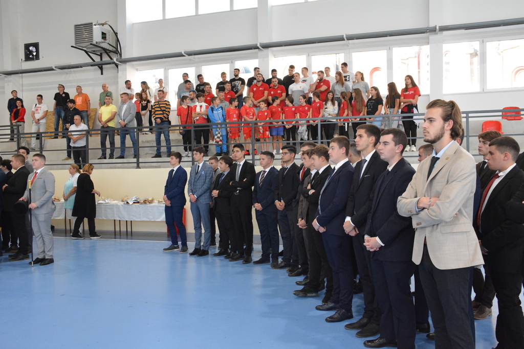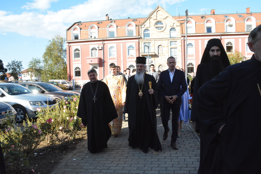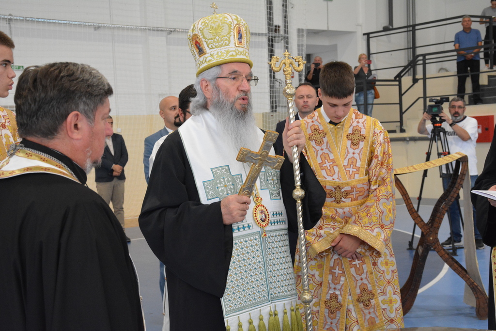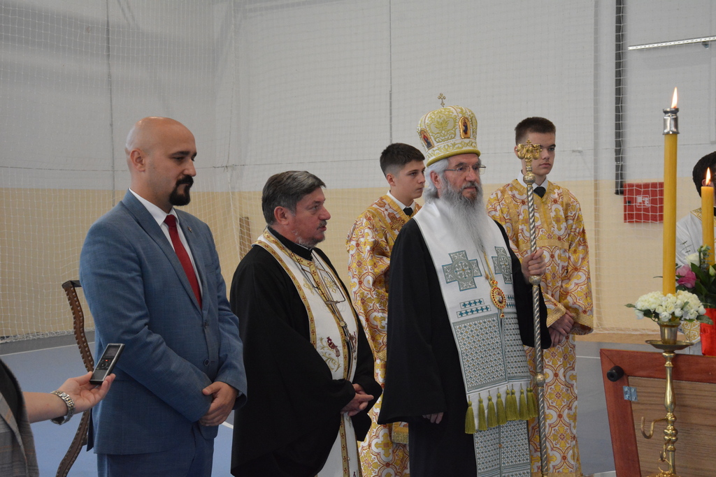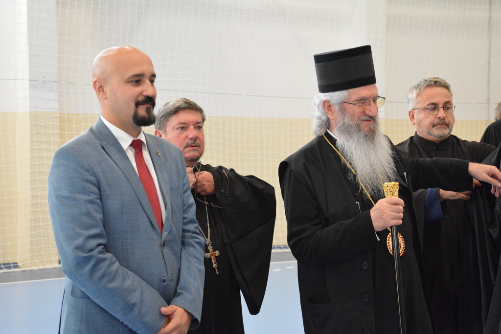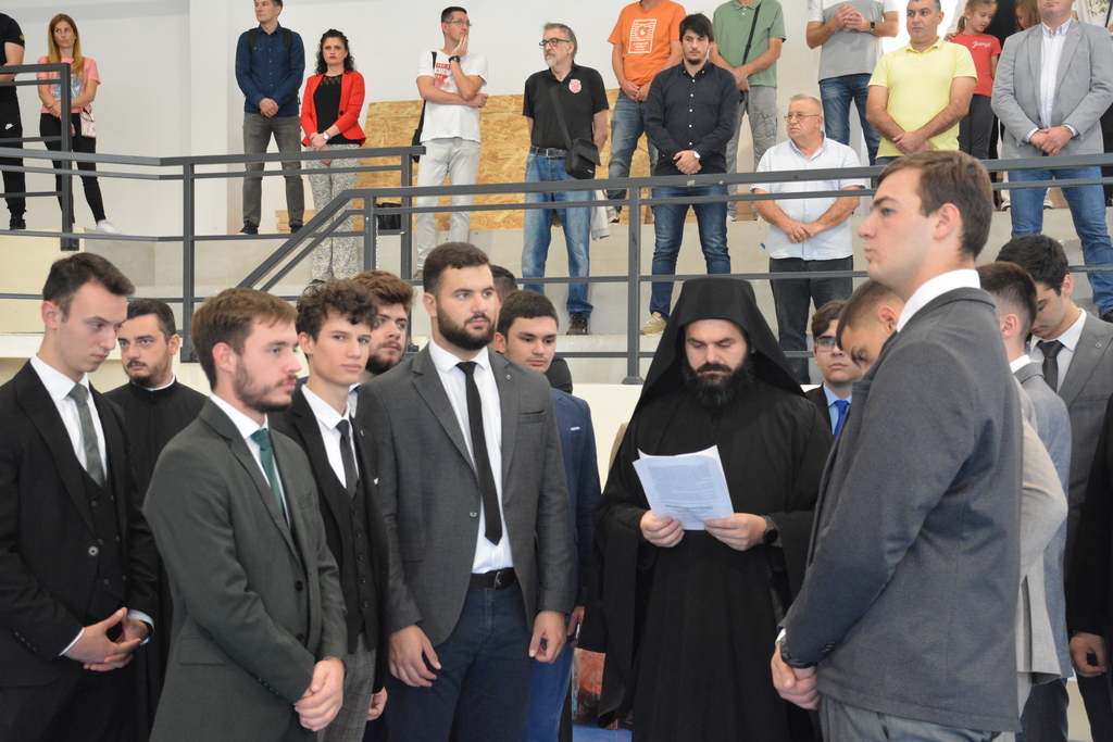 По завршетку освећења, присутнима најпре се обратио председник скупштине града, Г-дин Мирослав Петрашиновић који је истакао да је ово богоугодно дело, и да смо дошли да обележимо завршетак градње фискултурне сале, и као што то обично бива када градимо неко дело да има недостатака и мука, али када је вера јака, када се удружимо заједно онда успемо да постигнемо да једно овакво дело завршимо и да буде на корист свима вама и нама. Дошли смо да обележимо завршетак радова на овакво значајном инфраструктурном пројекту, који ће да помогне и нашим богословима који су се определили да се баве духовношћу, и да буде важан сегмент у образовању којег стичу од својих професора, да имају где да развијају физичко васпитање. Такође ће ова зграда бити дом и за наше рукометаше и коначно ће рукометни спорт добити праву дворану за своје активности... Ово је круна овог пројекта, и надам се да ће ово здање послужити нашим богословима а да ће и нашим спортистима рукометашима да стичу основне кораке и да ће у ову салу и овај град вратити са освојеним медаљама и пехарима.