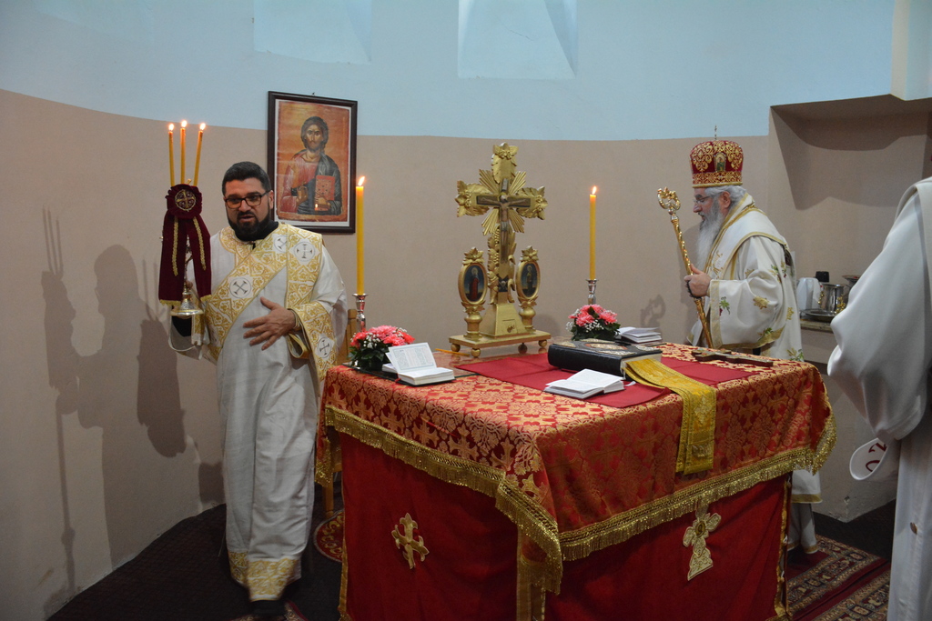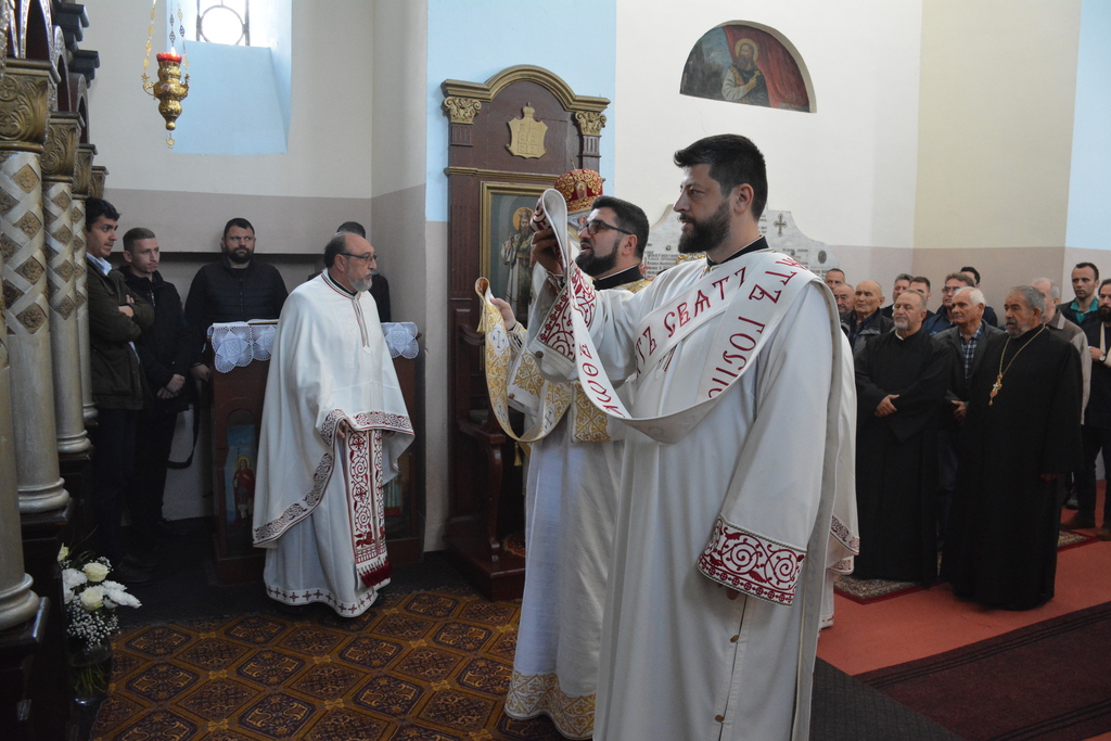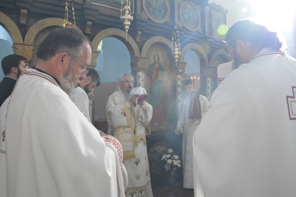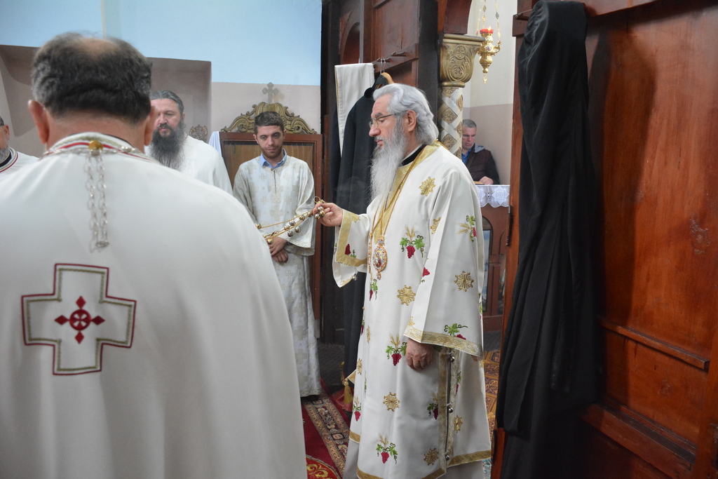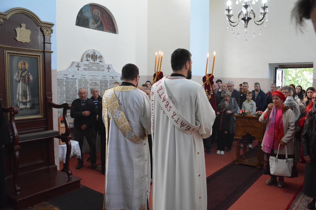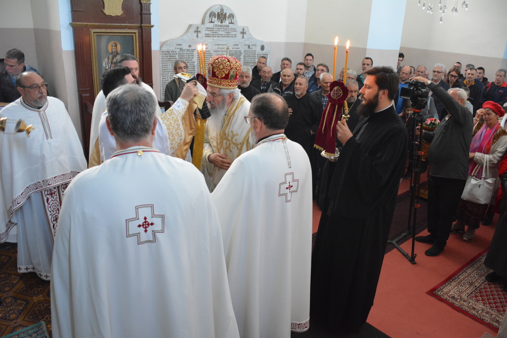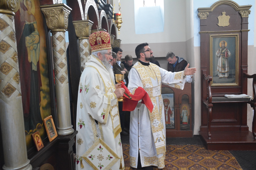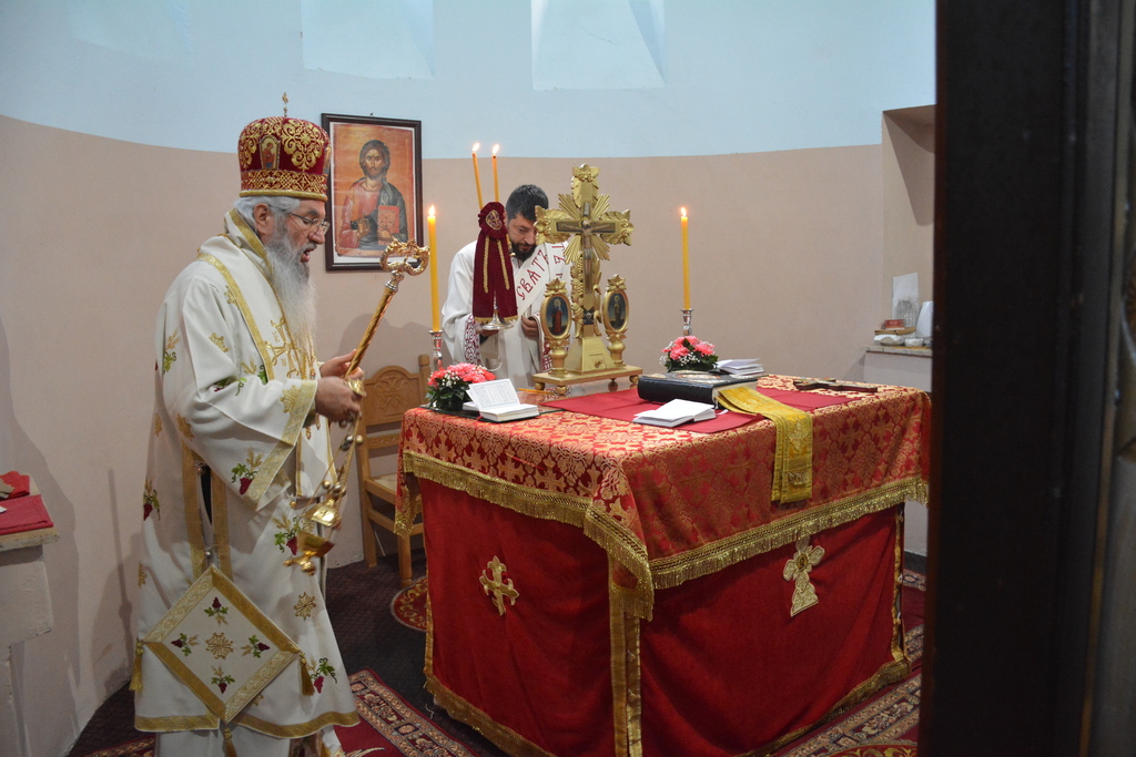 Шта то човек може да подари и принесе Богу? Ништа. Ми ћемо данас који смо се овде сабрали казати да смо данас принели свећу, просфору, кандило, или било шта. Добро јевто и тако и треба, али браћо и сестре, то Богу не треба, јер он је Пуноћа. Али треба нама и ми то чинимо због нас. И наше молитве нису Богу потребне, али су потребне ради нас, да ми молитвом умилостивимо Бога да нам Бог буде милостив. Све што чинимо ми заправи чинимо не ради Бога, већ ради себе. Све ово што ми приносимо јесу средства преко којих долазимо до Бога. И наш труд када је искрен и када је поштен онда Бог тај труд и награђује, ако га чинимо из смирења, а не само узгред. Зато Литургија тражи целога човека, а не човека који је само на Литургији присутан телом, а дух му тамо негде. Богу смо ми најпотребнији, јер је Он ради нас и дошао у овај свет зато што воли човека. И зато Бог не жели да допусти да било ко од нас страда, погине духовно. Бог неће ни да природа пропадне, творевину је створио како би нас што више приближио себи, како би ми кроз ову лепоту творевине Божије сагледали силу Божију, моћ Божију и љубав Божију. Творевина се преко човека спасава и она уздише када је човек окрене леђа. А, како тек Бог уздише када му ми окренемо леђа. Бог хоће нас који му се у миру обраћамо и у миру живимо са Њиме и једне са другима, са ближњима. Тај Божији мир ми осећамо свуда, ако имамо веру, а највише тај мир осећамо на Божанственој Литургији. Неопходно је да Света Литургија од почетка сија светлошћу Свете Тројице. Литургија је Светлост и зато свештеник и започиње Свету Литургију славословећи Свету Тројицу. Она је откривење Царства Небескога, али је она у исти мах и Тајна Христовог доласка. Она нам открива Ваплоћеног Бога, јер Његов долазак јесте то Царство Небеско. Христос се јавља управо кроз Свете Тајне које се свршавају на Божанственој Литургији. Литургијски Христов долазак што и јесте евхаристијска, приношена благодарна Тајна прображава земљу у небо. Она спуста небо на земљу и земљу уздиже на небо. Сви заједно служимо Литургију са Богом, али са нама саслужују и анђели и арханђели, браћо и сестре. Тако храм, у коме се сабирају верници да би исказали благодарење Господу, постаје обиталиште анђела и арханђела. И када би нам се отворио тај духовни вид видели би смо да је овај храм пун анђела и светитеља Божијих. Зато нам треба, као што рекох, тај духовни хришћански живот, да сагледамо оно што не можемо сагледати нашим телесним очима. Литургија се служи у миру, у миру са Богом, са собом и једних са другима. У миру Господу да се помолимо, тј. са миром. А тај мир, прави мир, јесте једино мир Божији, вишњи мир. Ако смо узнемирени онда нећемо да осетимо дејство благодати Божије које нам се даје управо кроз свете Тајне и свете врлине. Мир који је човек примио као благодатни дар од Бога управо је онај мир који човек поново прима живећи поред Бога, живећи Литургијом, живећи Јеванђељем, живећи Христом. Јер ништа друго не доноси мир нашој души као познање Бога и стицање врлина. Нека нам Господ помогне да живимо у миру са Богом, са собом и једних са другима”, рекао је Епископ Јован.