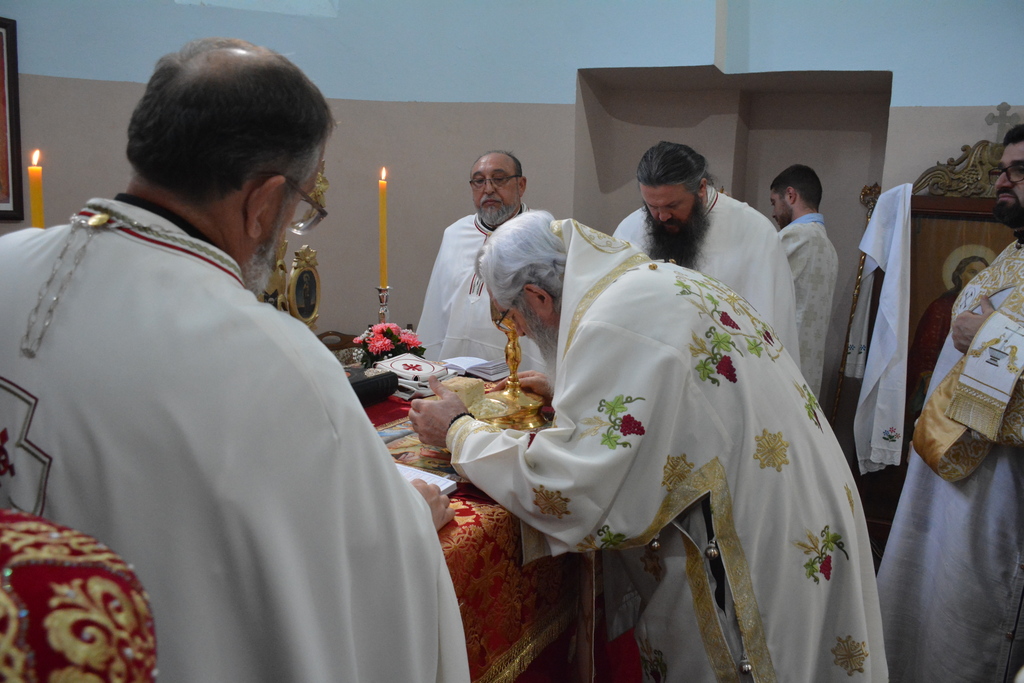 Епископу су саслуживали: протојереј-ставрофор Љубиша Смиљковић архијерејски намесник космајски, јеромонах Серафим (Рикановић) игуман манастира Тресије, протонамесник Горан Јеремић парох сибнички, јереј Филип Јовановић парох раљски, протођакон Иван Гашић и ђакон Бојан Миленовић.