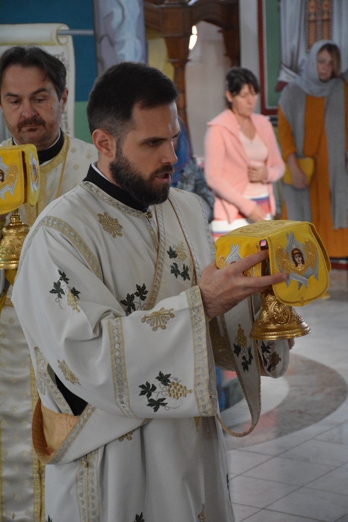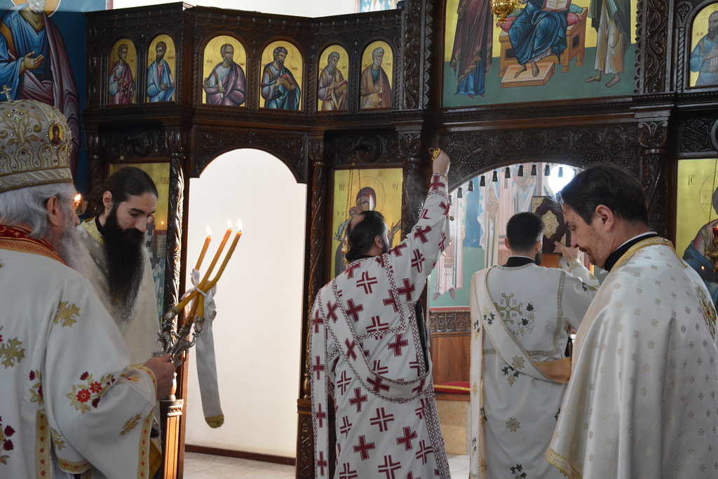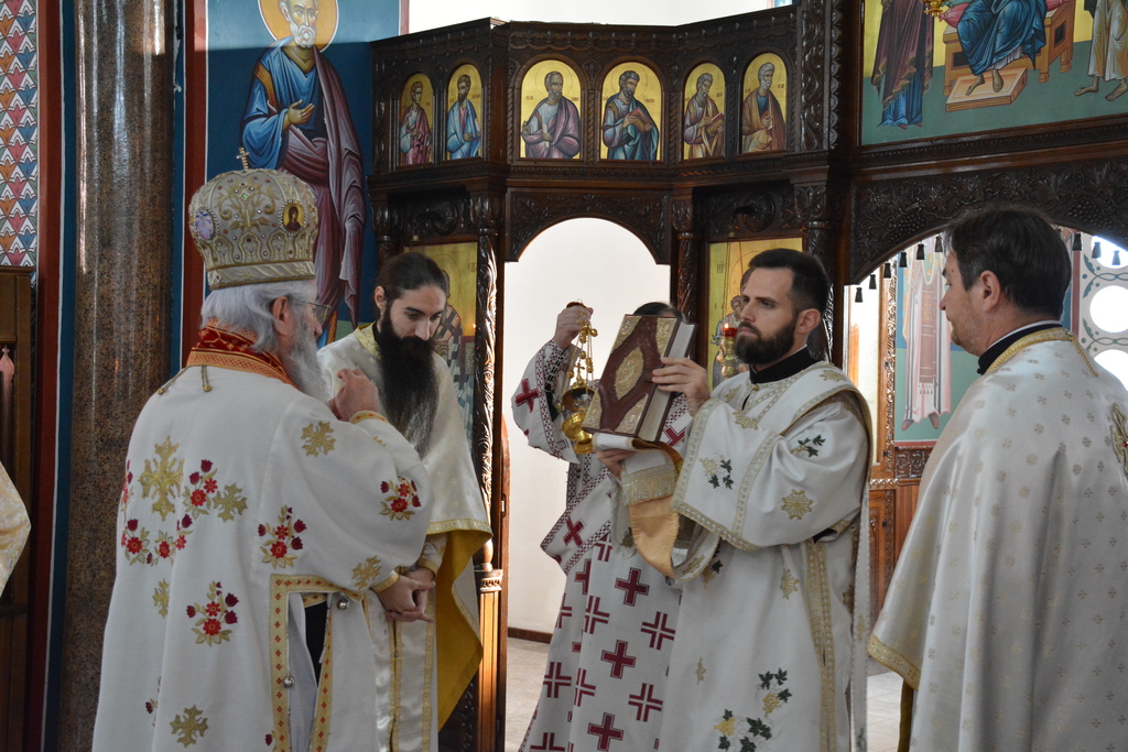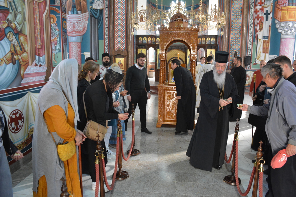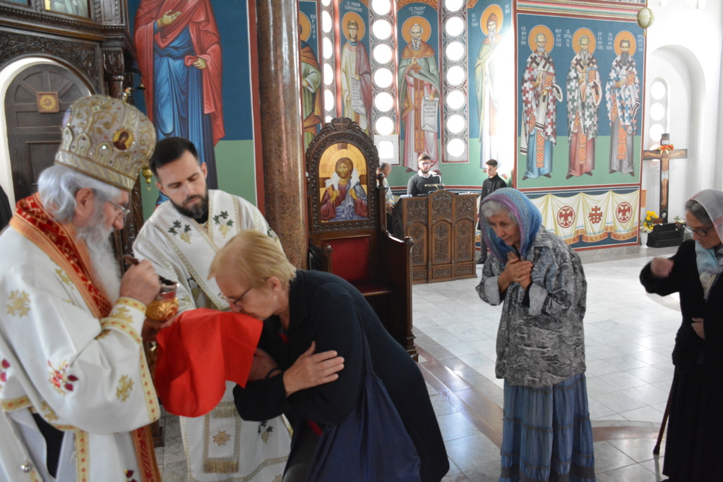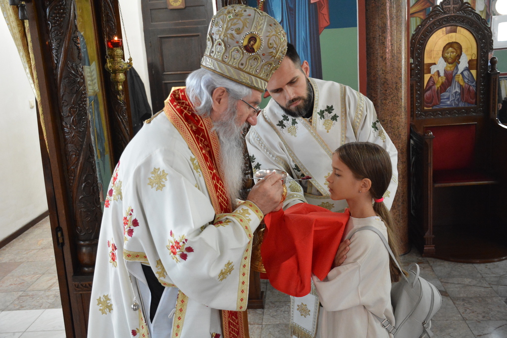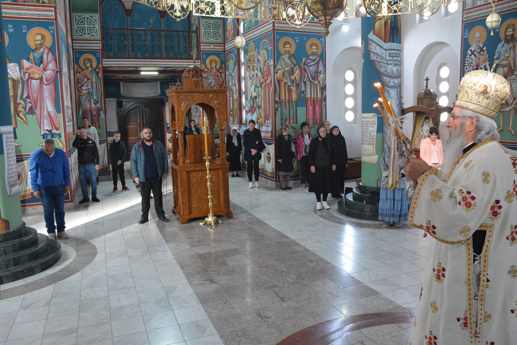 У наставку Преосвећени је причестио верни народ Телом и Крвљу Господњом и подсетио све верне на један поучан пример из живота Светог Владике Николаја, на духовно укрепљење и радост: „Када је владика Николај рукоположио једног младог свештеника у Македонији и поставио у неком месту, и овај мученик у току дана је бивао на парохији, али ноћу када би се звери чуле побегао би. И дошао је код светог Владике у Охрид и каже: „Свети Владико не смем да живим овде, моја жена и деца се плаше“. Владика га саветује као да је то ватрено крштење, да треба да победи себе, да се моли, и он тако охрабрен речима Владике Николаја оде и опет побегне. И тако је чинио неколико пута, и он је наставио да долази код владике само да га премести, мислећи да ће на другом месту да му буде боље. На крају владика Николај кад је он дошао он му да неку књигу да чита и не разговара са њим. И овај када је схватио и када је видео да он има борбу у себи, Владика Николај је клекнуо пред иконом Христовом и казао: „Боже опрости ми што сам овог човека рукоположио за свештеника када њему ни благодат Твоја није довољна“. Чувши овај свештеник узео је благослов, отишао у своју парохију, и додао је после Владика Николај да је тај свештеник остао на том месту све време свештеничке службе и Владика додаје и каже та парохија није била парохија, то је био прави монашки манастир.“