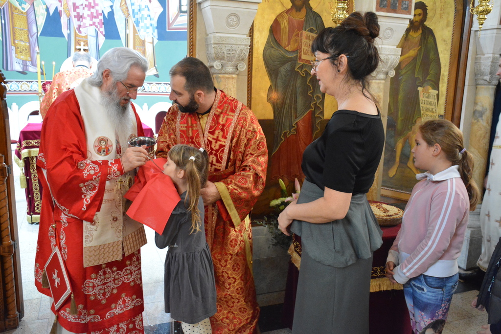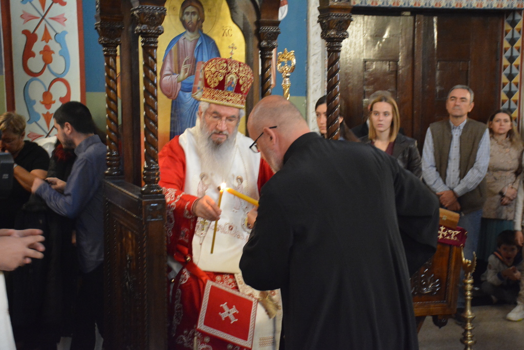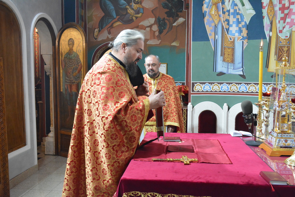 Свету Архијерејску Литургију служио је Његово Преосвештенство Епископ шумадијски г. Јован уз саслуживање архимандрита Онуфрија (Вранића), игумана манастира Денковац, Архијерејског намесника колубарско-посавског, протојереја-ставрофора Златка Димитријевића, протојереја ставрофора Александра Новаковића, протојереја Небојше Леке, протођакона Николе Урошевића и ђакона Стевана Илића.