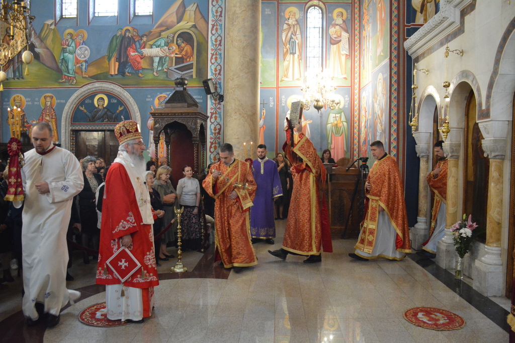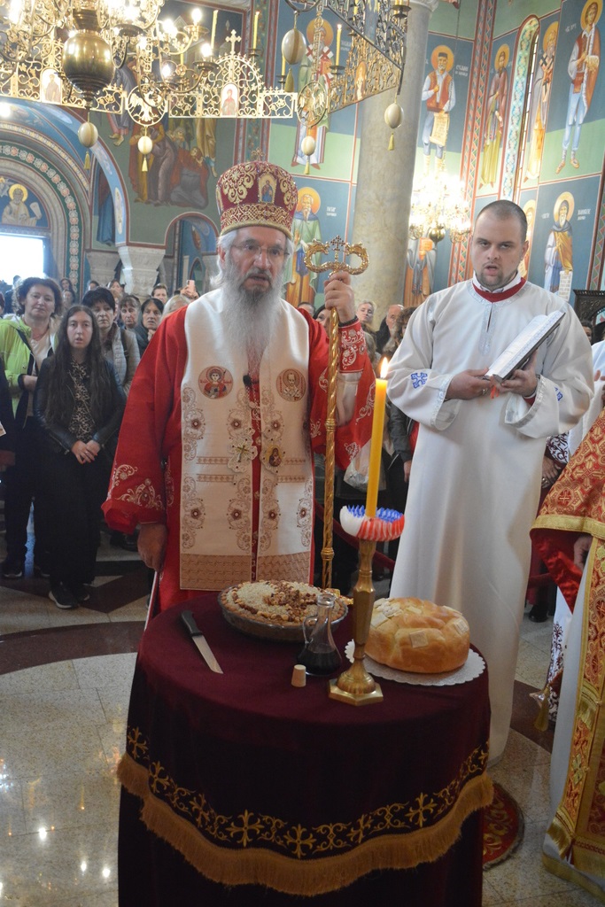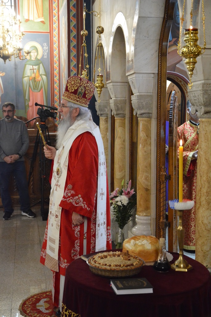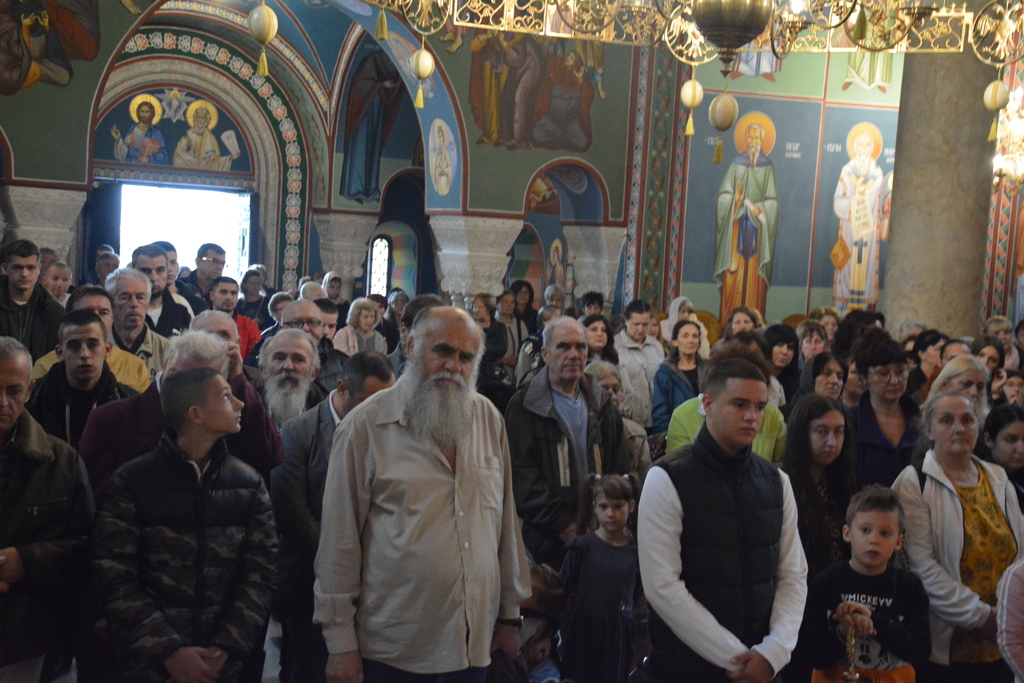 Зато нека нам Свети Димитрије буде пример како треба, не да ми тражимо страдања већ кад она дођу, ради Бога да то издржимо и да се одржимо јер се у невољи треба одржати и у невољи се треба показати да си јунак. Наше јунаштво ако је само по нашим снагама, моћима, неком богатсву ишчезне и нестане. Ал кад је наша снага у Бога и вера у Бога, онда нам је све дургачије. Кад имамо веру у Бога имамо поверење у Бога, али онда човек има и поверења у другога, без обзира што други нема у њега поверења, наше је да ми показујемо да верујемо и Богу и човеку.Питао сам великог теолога, владику у Француској, да ли Бог верује у нешто, а он је као из пушке одговорио да Бог верује у човека. Дакле, Бог верује да се ми можемо исправити, али морамо да ставимо тачку на тај свој его, на своју гордост. Да ставимо тачку ако чинимо зло и да знамо да зло добра донети не може. Нека је срећна слава, нека Свети Димитрије, заштитник овог храма буде и нама заштитник и молитвеник. Нама требају молитве сваког од нас једни за друге, али нам посебно требју молитве светитеља, јер како каже у Светоме писму: „Молитва праведнога много значи“.