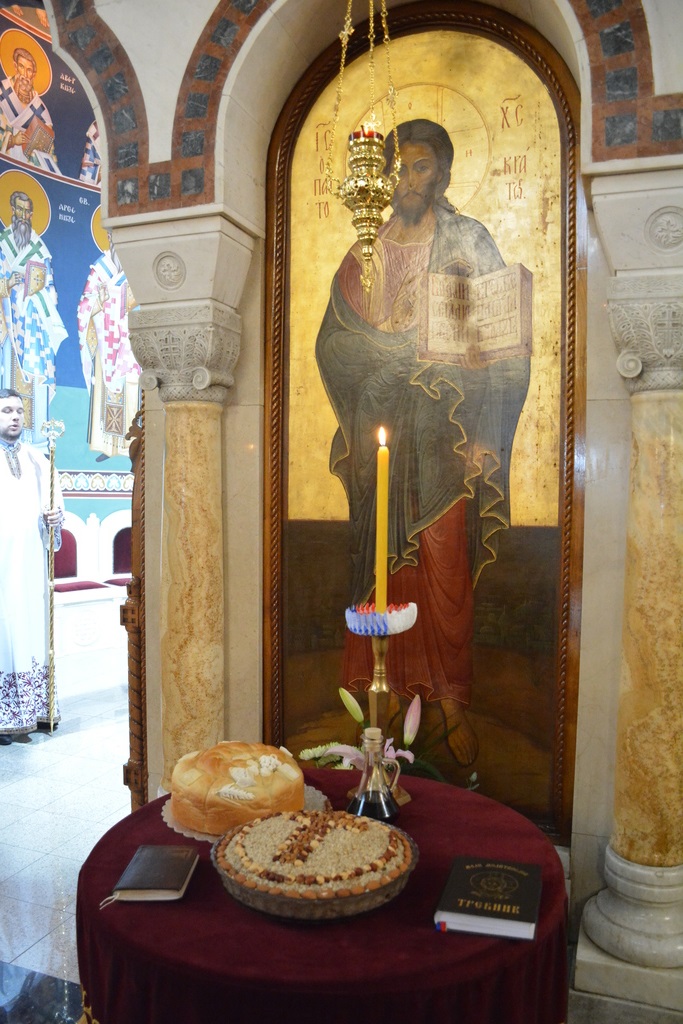 Славски колач преломљен је са овогодишњим свечаром, господином Гораном Јовичићем. На крају Литургије уследила је трпеза љубави у свечаној сали парохијског дома, која је за све присутне припремљена трудом верника и свештенства лазаревачког храма. Славској трпези придружио се и градоначелник града Београда господин Александар Шапић, који се на овај велики празник обрео у посети нашем граду и својим присуством увеличао наше слчавље.