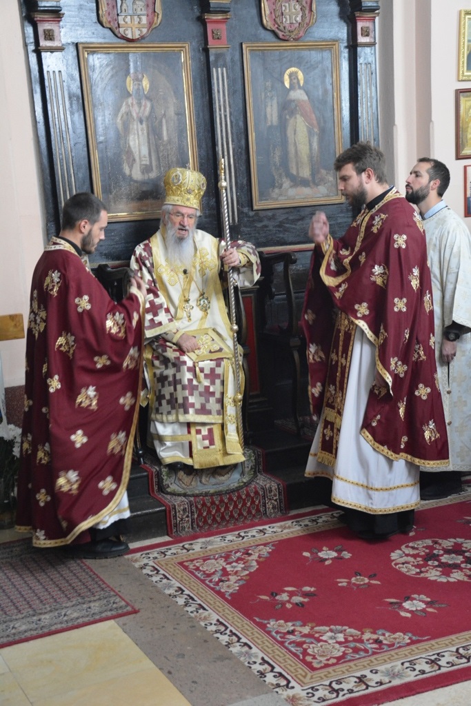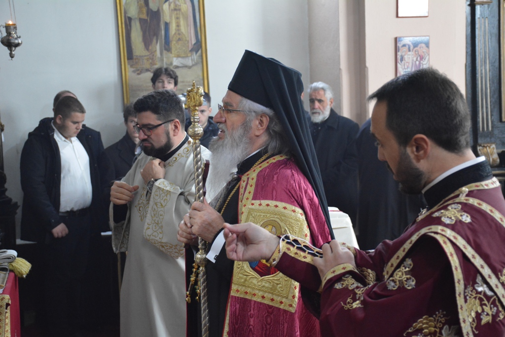 Његовом Преосвештенству су саслуживали Архијерејски намесник орашачки, протојереј-ставрофор Мићо Ћирковић, Архијерејски намесник опленачки, протојереј-ставрофор Миладин Михајиловић, протојереј Миливоје Старовлах, протонамесник Дејан Тодоровић, јереји Марко Петровић и Петар Грујић, протођакон Иван Гашић и ђакон Александар Бабић.