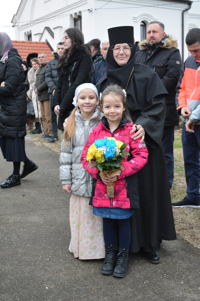 Својим лепим појањем архијерејску Литургију улепшао је дечји хор из драгоцвета, предвођен попадијом Јеленом Стојадиновић са сестрама из манастира Липар коју је претводила игуманија мати Тавита.