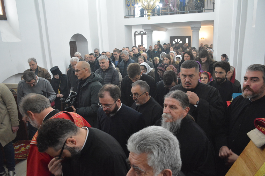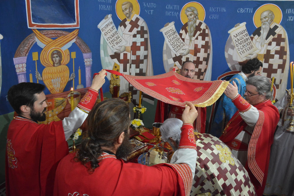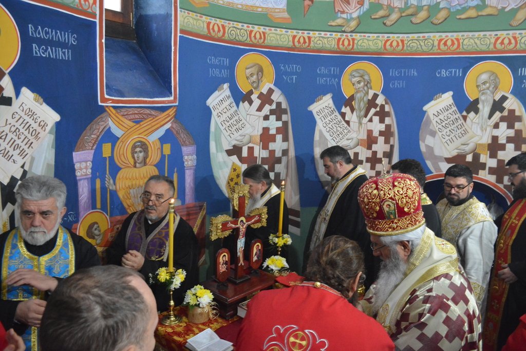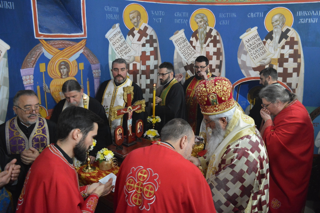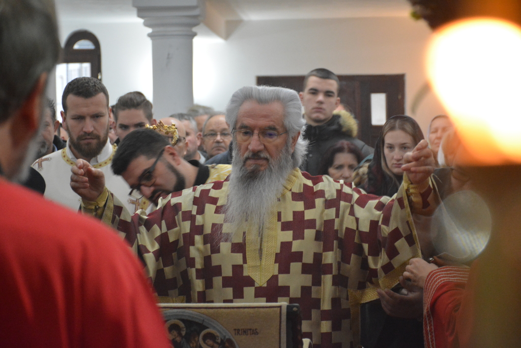 Његовом Преосвештенству саслуживали су: високопреподобни архимандрит јошанички Евтимије, намесник белички протојереј Александар Гајић, протосинђел манастира Светог Пајсија Светогорца отац Пајсије (Илић), јереј Милош Ћирић, протођакони Иван Гашић и Нинослав Дирак и чтечеви Бојан Тодоровић, Никола Љубисављевић, Никола Ралевић и Драга Кељаћ.