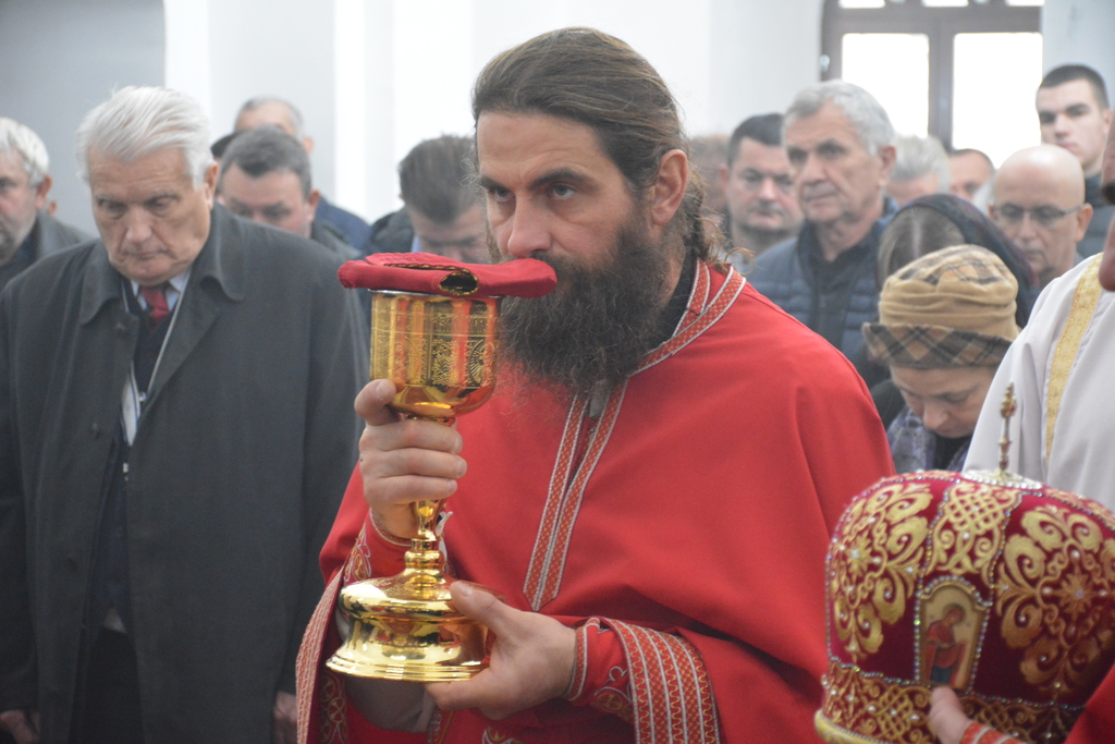 „У име Оца и Сина и Светога Духа! Свети апостол Павле пишући посланицу хришћанима у Ефесу, он их моли и каже: ,,Браћо, молим вас да се Христос вером усели у срца ваша.“ Довољна нам је ова једна реченица да разумемо и схватимо значај вере за наш живот. И не само за овај живот на овоме свету, него за онај живот вечни и непролазни. Јер нас Господ није створио за овај привремени живот, овоземаљски, него нас је створио за вечност за живљење са Богом у Царству Небеском. И заиста, вера је за нас прави путоказ којим треба да идемо. Јер онај који заиста живи вером, а не онај који говори да верује њега ће вера увек, да тако кажем, усмерити да не чини оно што не треба да чини, да не говори оно што не треба да говори, да не поступи онако како не треба да поступи, јер ако већ верујемо и живимо том вером, онда је то недолично хришћанину који себе тако назива, да чини зло и мисли зло. Вера човеку даје смирење. Тамо где је смирење тамо нема гордости, тамо нема сујете, тамо нема оног свог ега. Тамо је само Христос који се уселио у човека. Вера чини човека свемоћним, не моћним, него свемоћним. А то и потврђује и сам Господ Исус Христос: ,,Све је могуће ономе који има вере“. Могуће је ономе који има вере да се исправи, да се поправља, да постане бољи човек, да постане бољи хришћанин. А онај који нема вере, он је да тако кажем у својој жабокречини. Сам се дави у тој својој жабокречини, јер нема вере која ће га подићи и казати да изађе из своје жабокречине. Господ ти је дао веру управо да не потонеш, него да се усправљаш у смирењу, а не у гордости. И заиста онај који има вере у Бога тај и заиста и верује у Бога оним речима Светог апостола Павла: ,,Ко прилази Богу треба да верује да Бог постоји и да Бог награђује онога који има вере“. Е ако имамо веру и живимо по њој онда ће нас Бог наградити. Не само у Царству Небеском него ће нас наградити и овде. Чиме? Управо тиме да будем бољи човек, бољи хришћанин. Јер вером проверавам себе, проверавам тај свој однос са Богом, са собом и са другима. Онај који нема вере, тај неће другог човека поред себе, он омаловажава другог човека, он потцењује другога човека, јер мисли тако зато што нема ту праву веру, него има сујеверје и маловерје, а онога чини таквим какав јесте. И он се као такав издваја, али не са вером и кроз веру, него на свој начин како сматра да је вера исправна. Понављам себи и другима, ко има вере, тај има Бога у себи. Ако има Бога у себи он заиста себе проверава Богом. И зато нема Христа онај који Га има само на језику. То вам је као онај лопов који се уби да докаже своје поштење, али на непоштен начин. Тако и вера. Ако нам је вера само на језику онда нема Бога у нама, нити има Христа онај кога има само како кажу Свети оци, кога има само на хартији. Имамо икону, али нам она стоји као слика, а не као икона у којој ја треба да се огледам. Нема Христа, нити онај кога има само не само на зиду, нити га има онај који га има у некој својој прошлости. Онај који Га заиста има је онај који Христа има у срцу своме и ко носи Христа у срцу. Христос је љубав. А вера је та која нам умножава и загрева љубав. Онај који нема вере нема ни љубави. У њему је све презрење. Све презире, свакога презире. Али исто тако мисли да њега сви презиру, али он не види да он друге омаловажава, него мисли да њега сви други омаловажавају. Христос је љубав, а престо љубави је срце човеково. Е то је оно зашто треба 