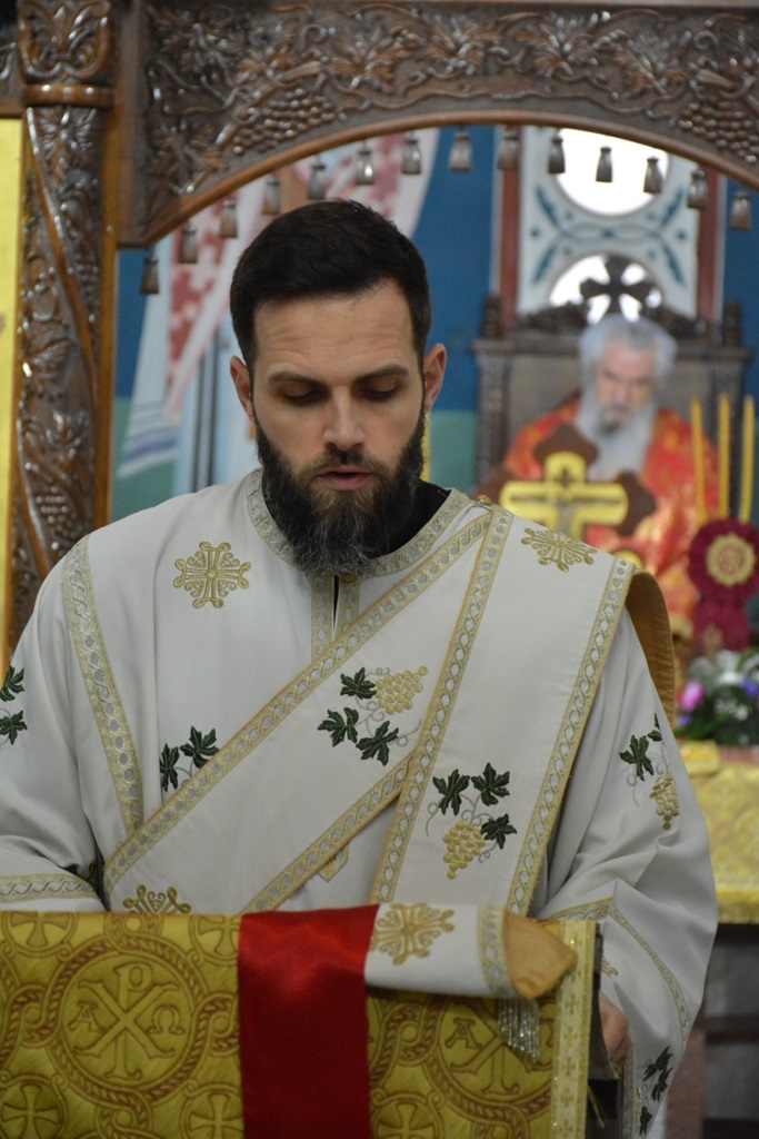 Његовом Преосвештенству саслуживали су архијерејски намесник крагујевачки протојереј-ставрофор мр Рајко Стефановић, јеромонах Јован (Прокин), јереј Иван Антонијевић и ђакон Александар Ђорђевић.