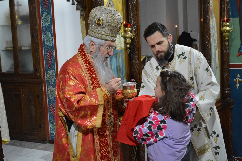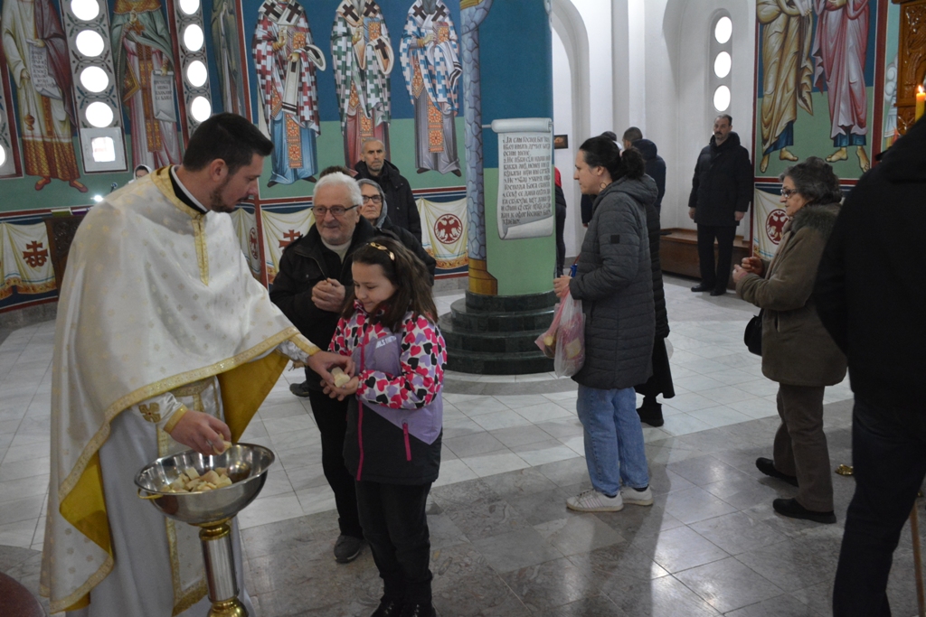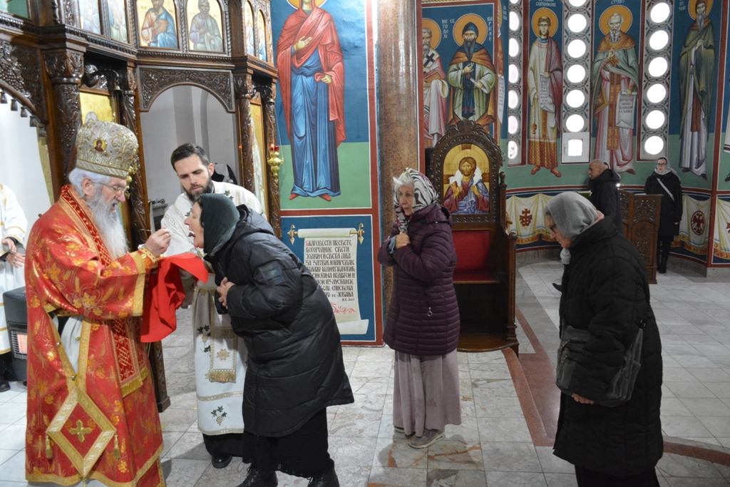 У наставку свете литургију, у предпразништву Богојављења Господњег, Преосвећени је причестио верни народ Телом и Крвљу Господа Исуса Христа, као залог будућег вечнога живота.